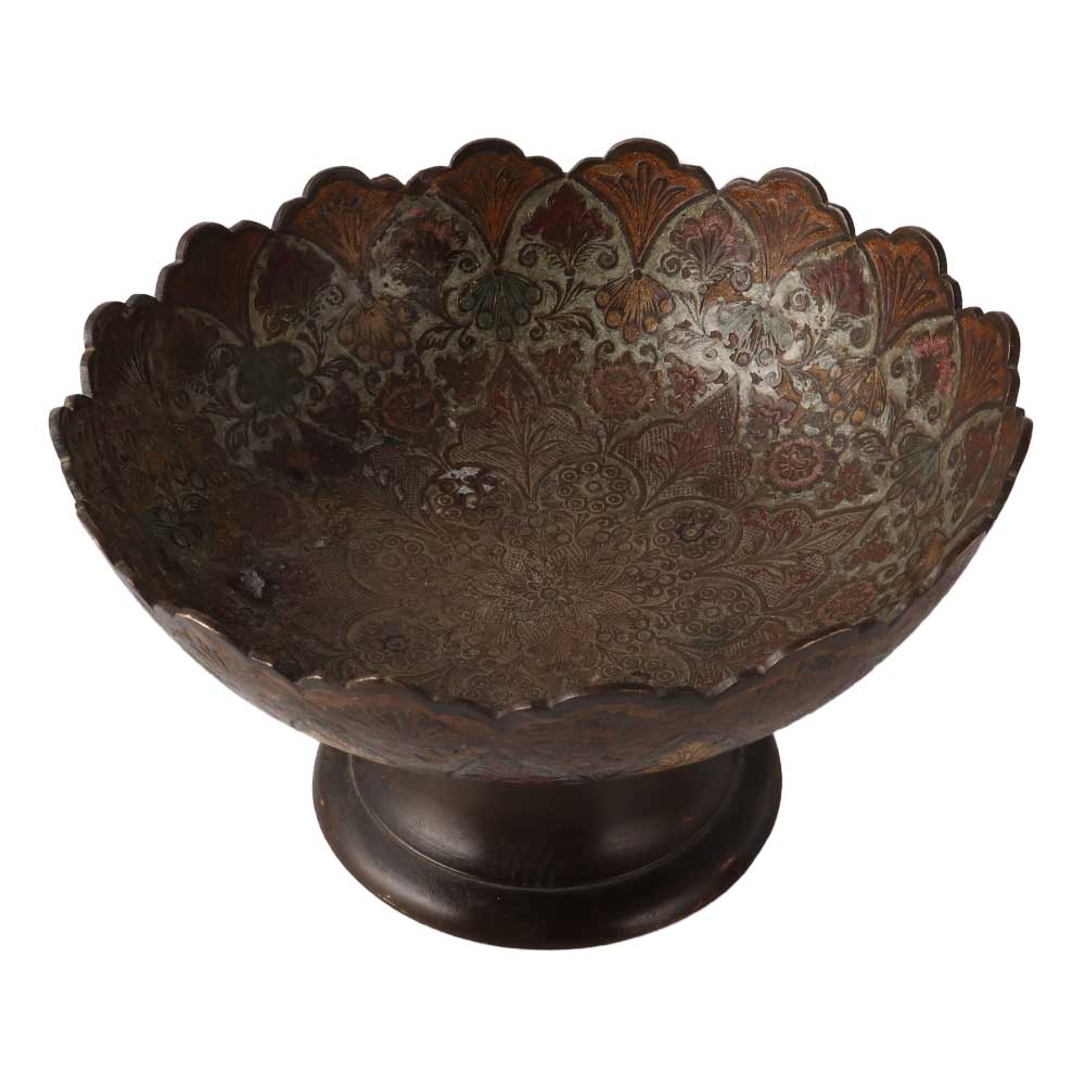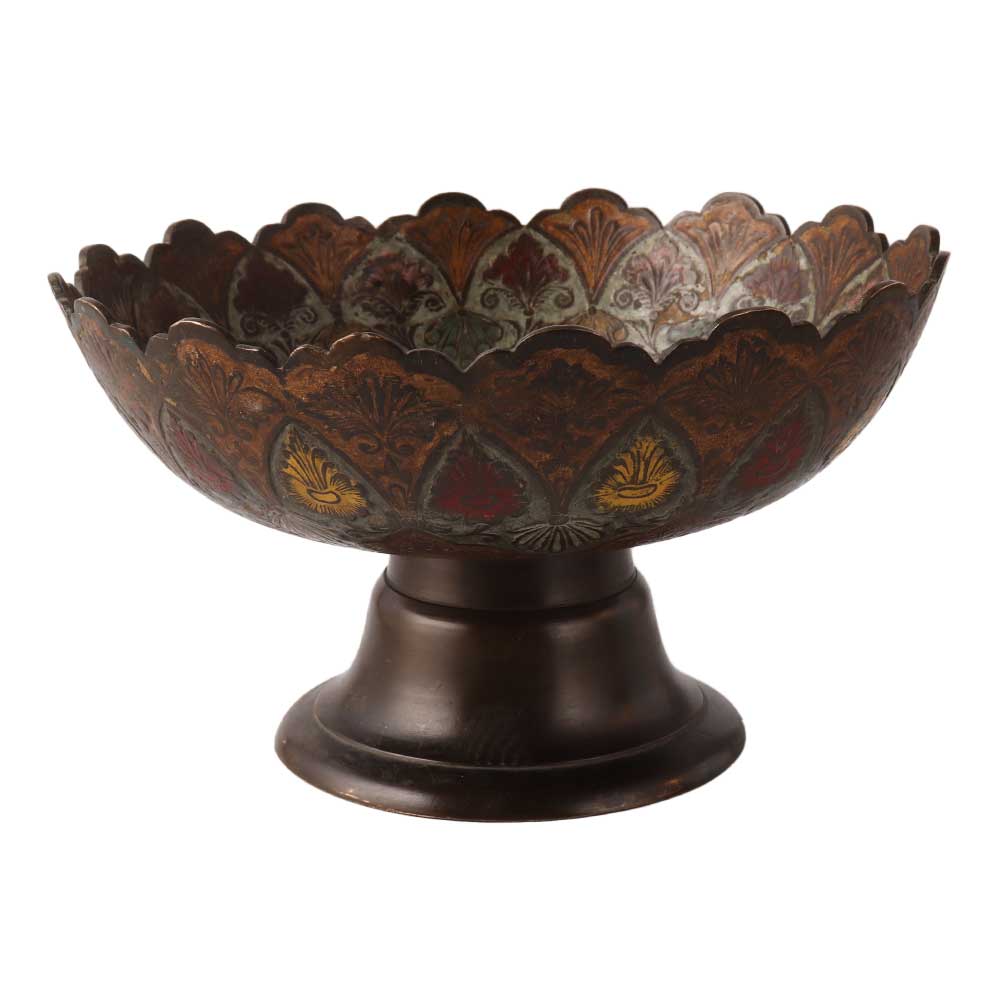 Handcrafted footed bowl looks elegant due to its meenakari work. This product is ideal for keeping fruits which will add beauty to the dining table. Use this beautiful bowl and enhance the beauty. Create an impression in the front of relatives and friends. This metal bowl will also the best choice present the gift on the various occasions like Diwali, wedding etc to your relatives impress them. Suitable for home and hotel both. These fruit bowls are very glary and can also be used for decorative purposes. A perfect gift for any occasion such as: Christmas Gift, Festivals, Mother's Day, Father's Day, Anniversary Gift and other Gift Ideas.