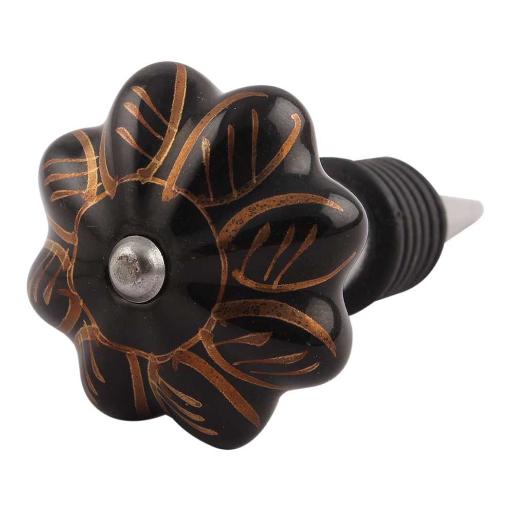 Black Golden Leaf Big Melon Ceramic Wine Stopper.zinc alloy wine bottle stopper with attractive Jute Bag Packaging.