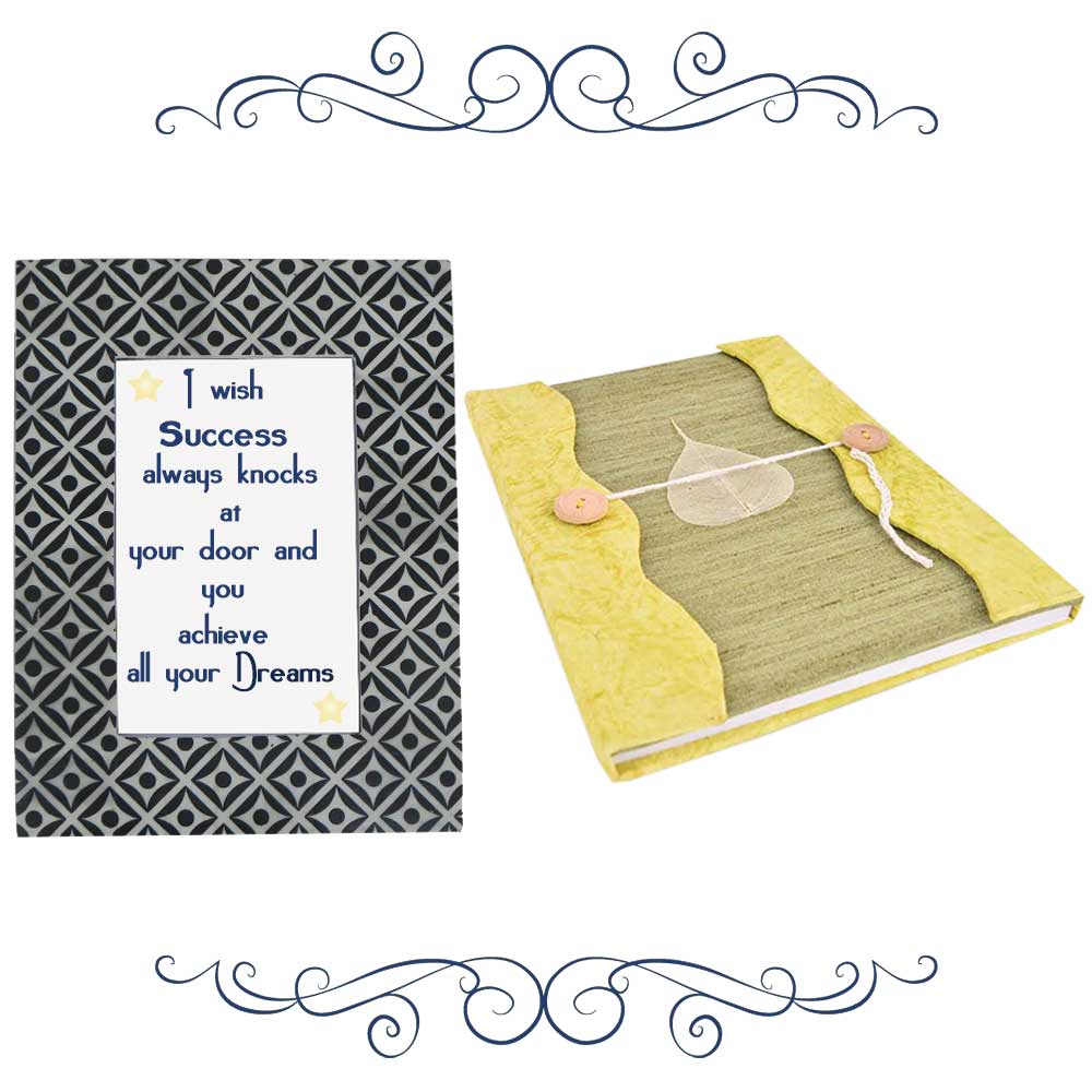 Black grey photoframe with yellow Green diary (combo pack).