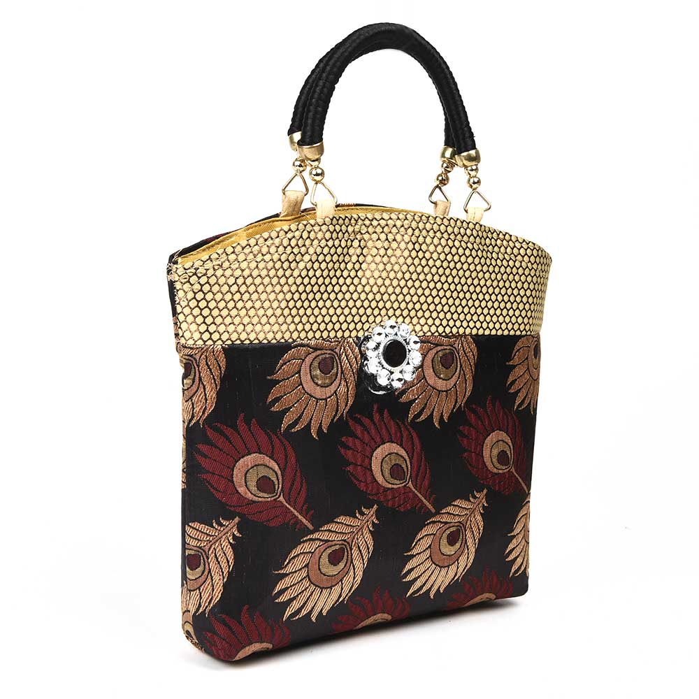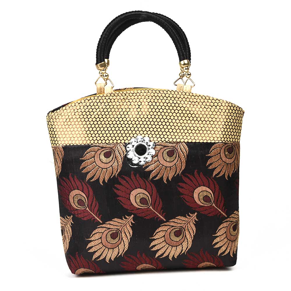 Hand Bag - Peacock Feather with Zari.Makes an excellent thamboolam gift bag for wedding, mehandi, sangeeth, baby shower etc.