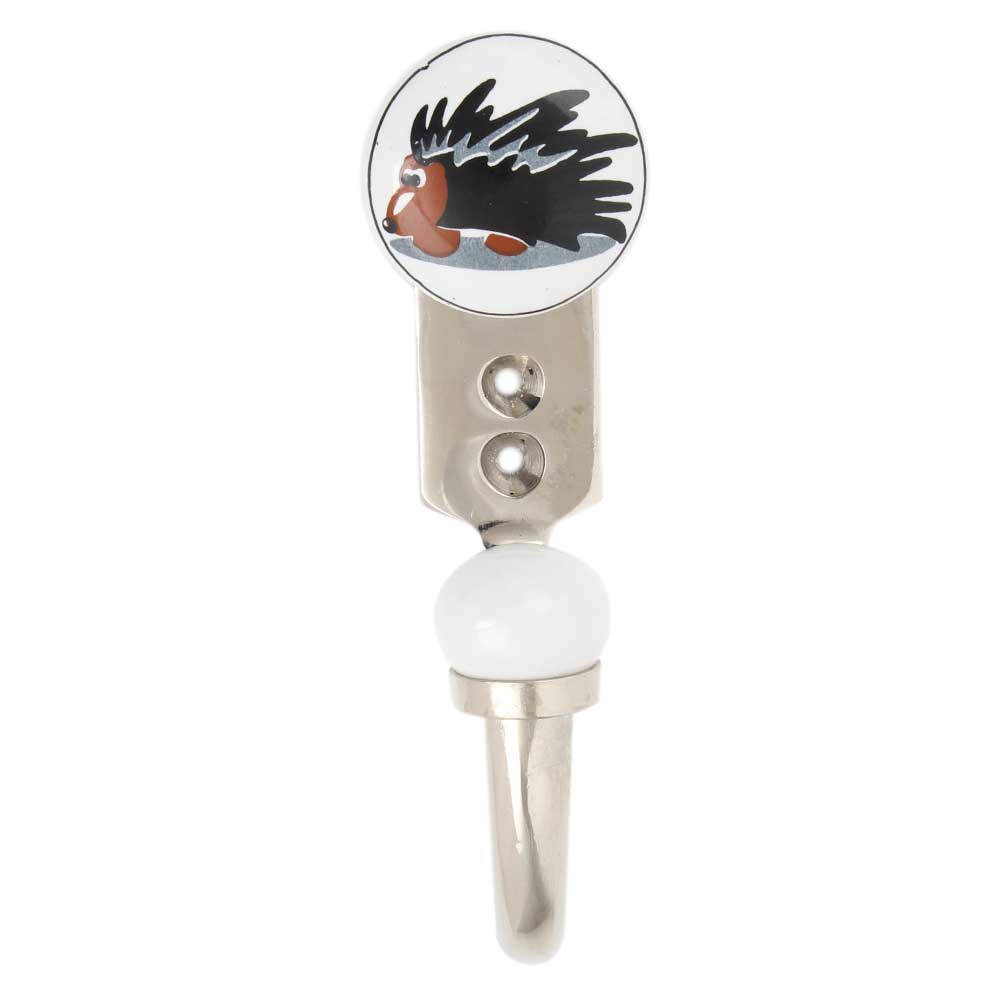 Create a themed wall by combining the black hedgehog hook with other animal-shaped ceramic hooks for a fun and functional art display.