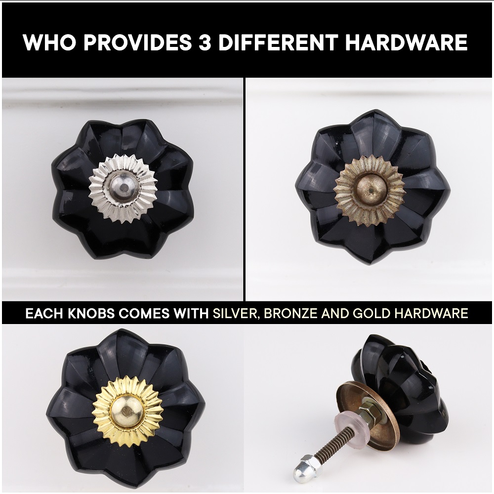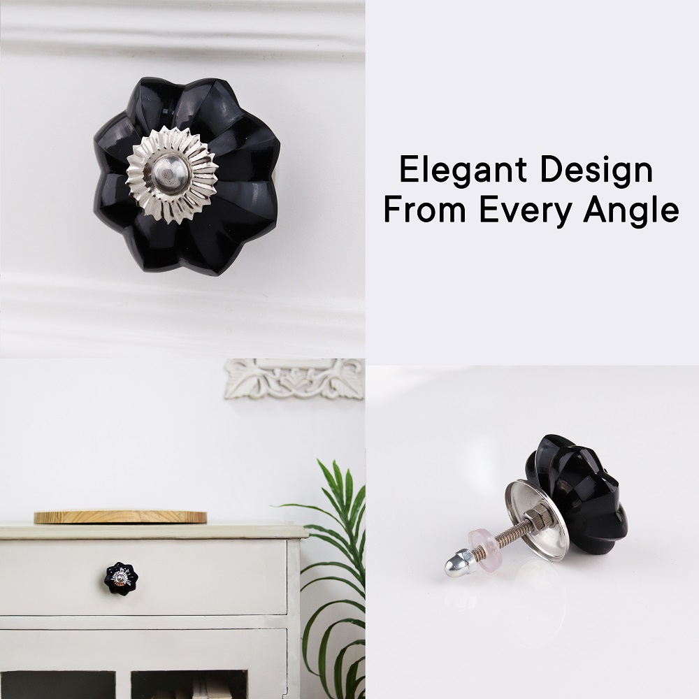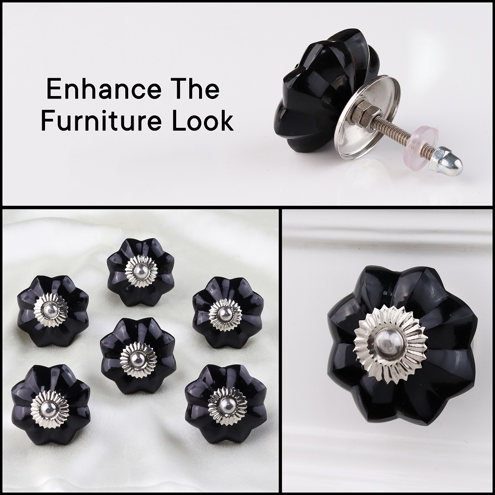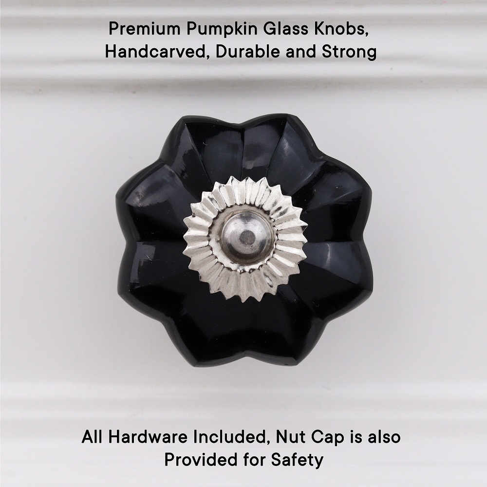 Black Melon Glass Knobs, Big. Ideal for Drawer, Dresser, Cabinet, Wardrobe, Cupboard and almirah