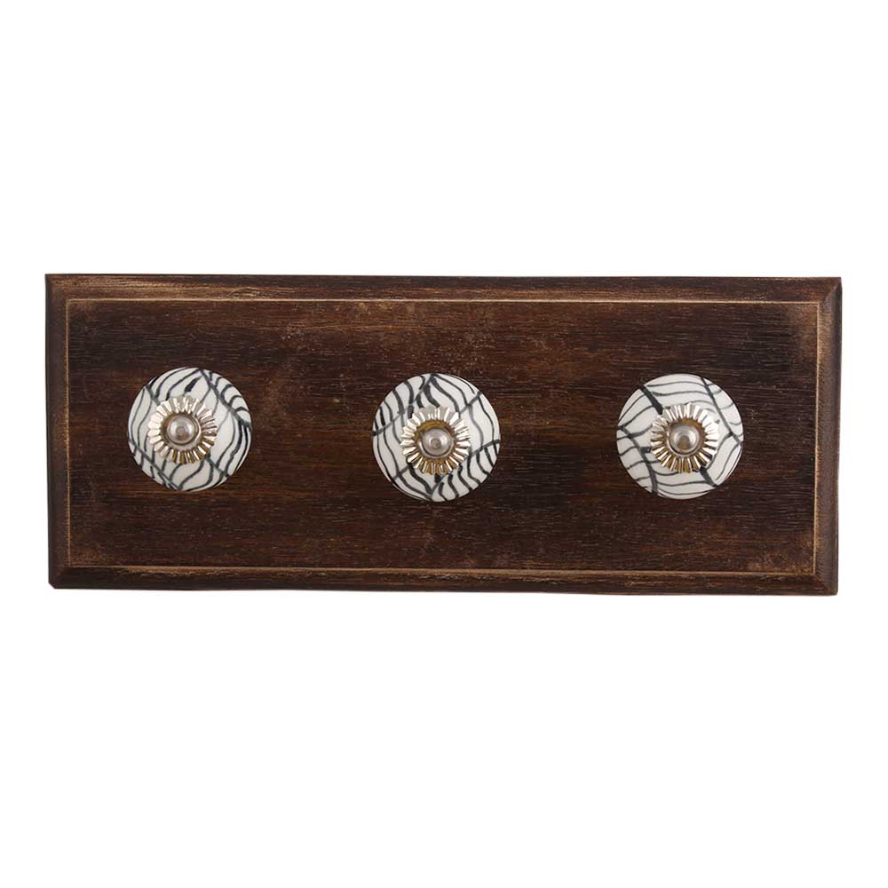 Black Leaf Ceramic Wooden Hook. A Perfect Complement to the Soft Tone of the Wood are these White Traditional Hat & Coat Hook Made of Genuine Porcelain and Brass. It can be use to Hang Jewellery, Leashes, Towels, Scarves, Light Weight Sweaters, Caps Etc.