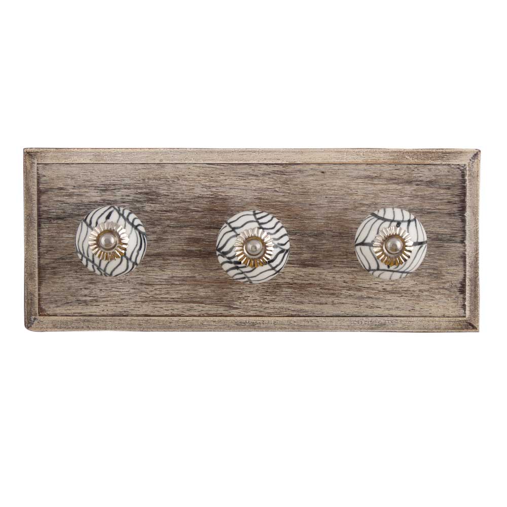 Black Leaf Ceramic Wooden Hook. A Perfect Complement to the Soft Tone of the Wood are these White Traditional Hat & Coat Hook Made of Genuine Porcelain and Brass. It can be use to Hang Jewellery, Leashes, Towels, Scarves, Light Weight Sweaters, Caps Etc.
