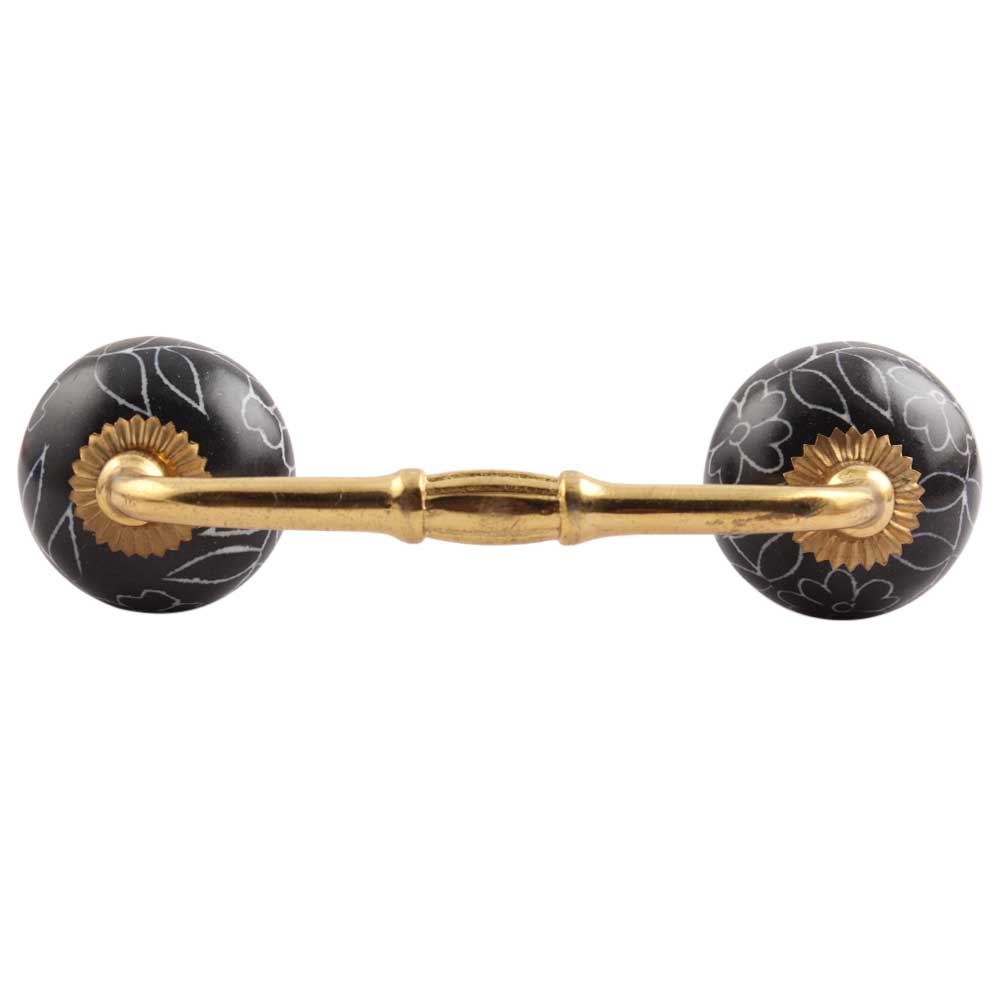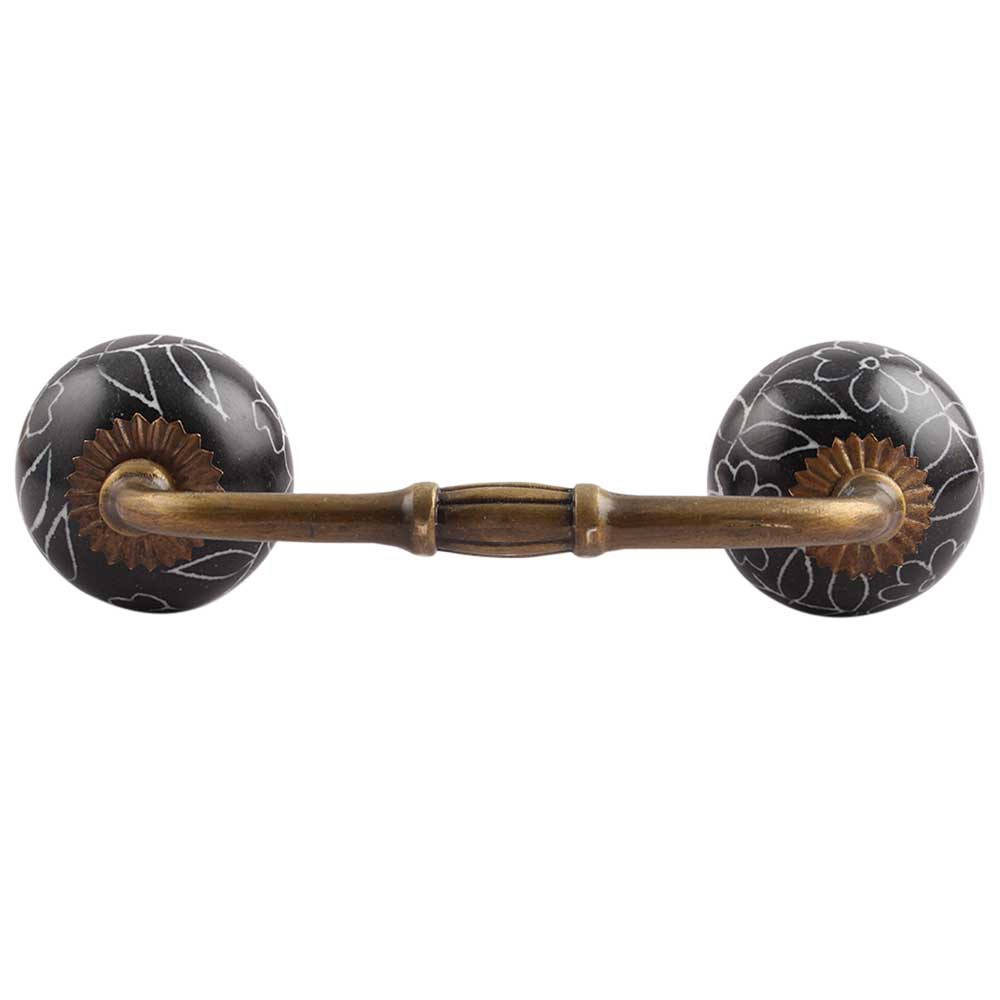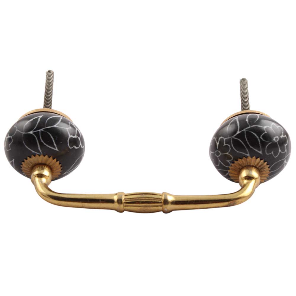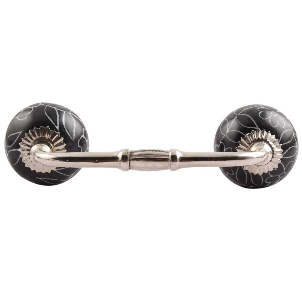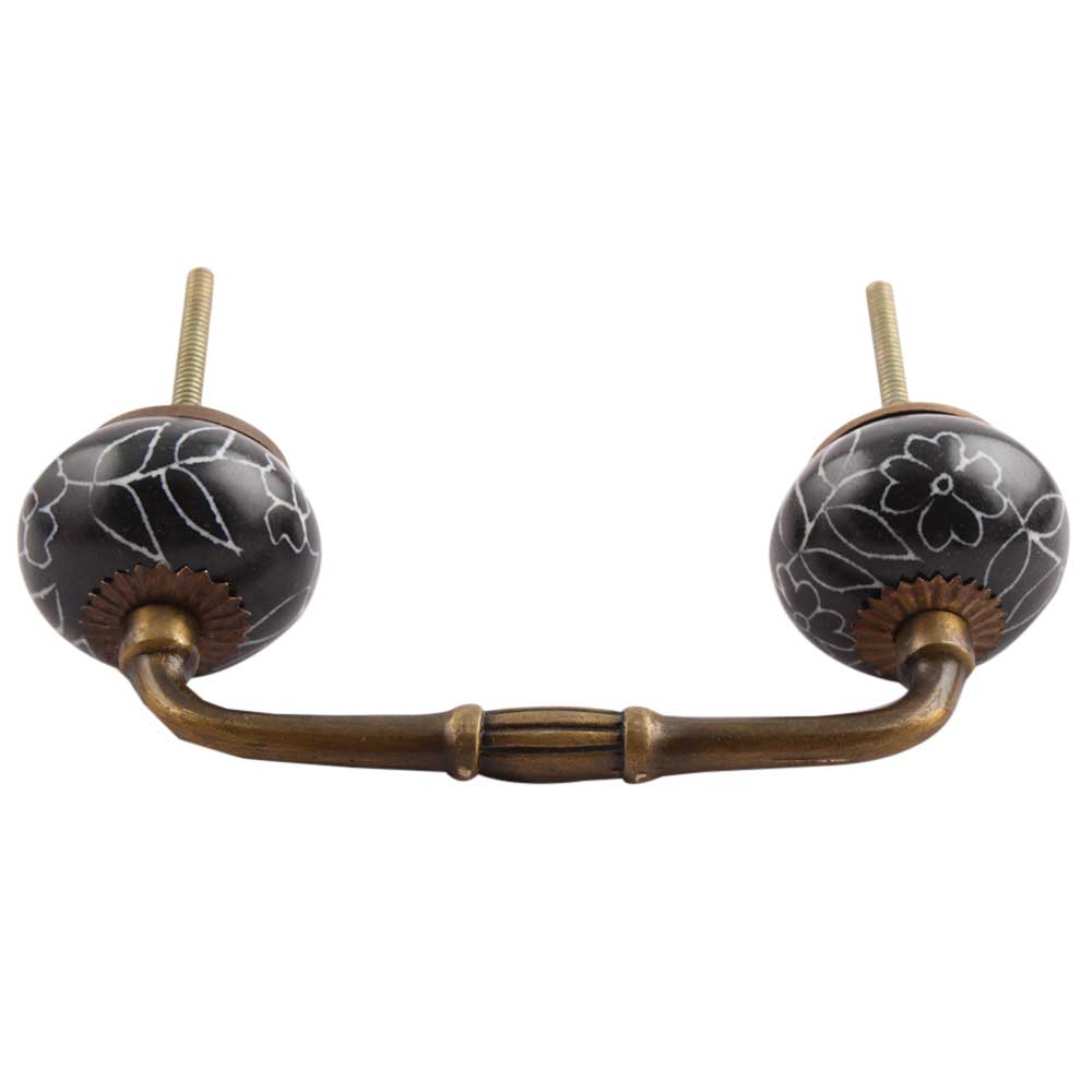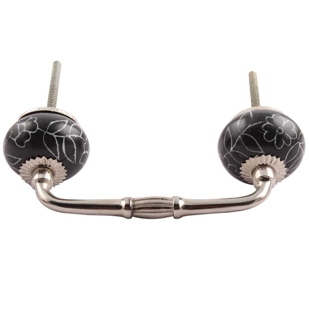 Black Leaf Floral Ceramic Bridge Handle. Ideal for Drawer, Dresser, Cabinet, Wardrobe, Cupboard and Almirah.