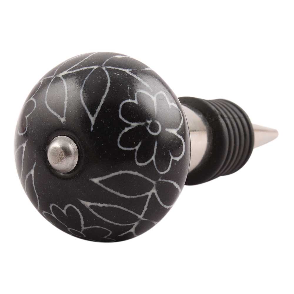 Black Leaf Floral Ceramic Wine Stopper.zinc alloy wine bottle stopper.