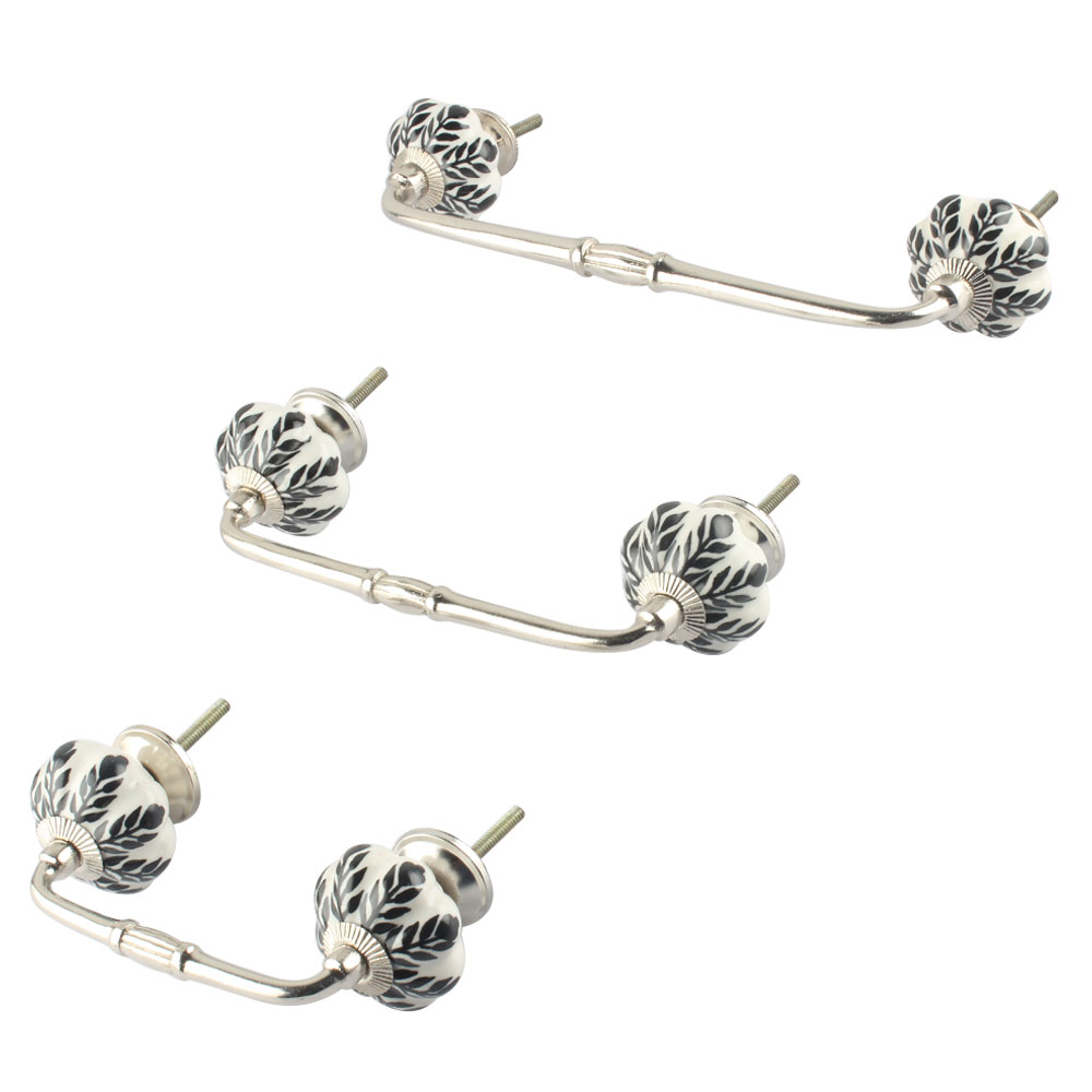Whether you're refreshing your kitchen cabinets, bathroom drawers, or your bedroom dresser, the Black Leaf Melon Ceramic Bridge Handle is a versatile enhancement for your furniture. Its striking design and neutral colors make it an ideal match for a range of interior styles, from modern to vintage-inspired.