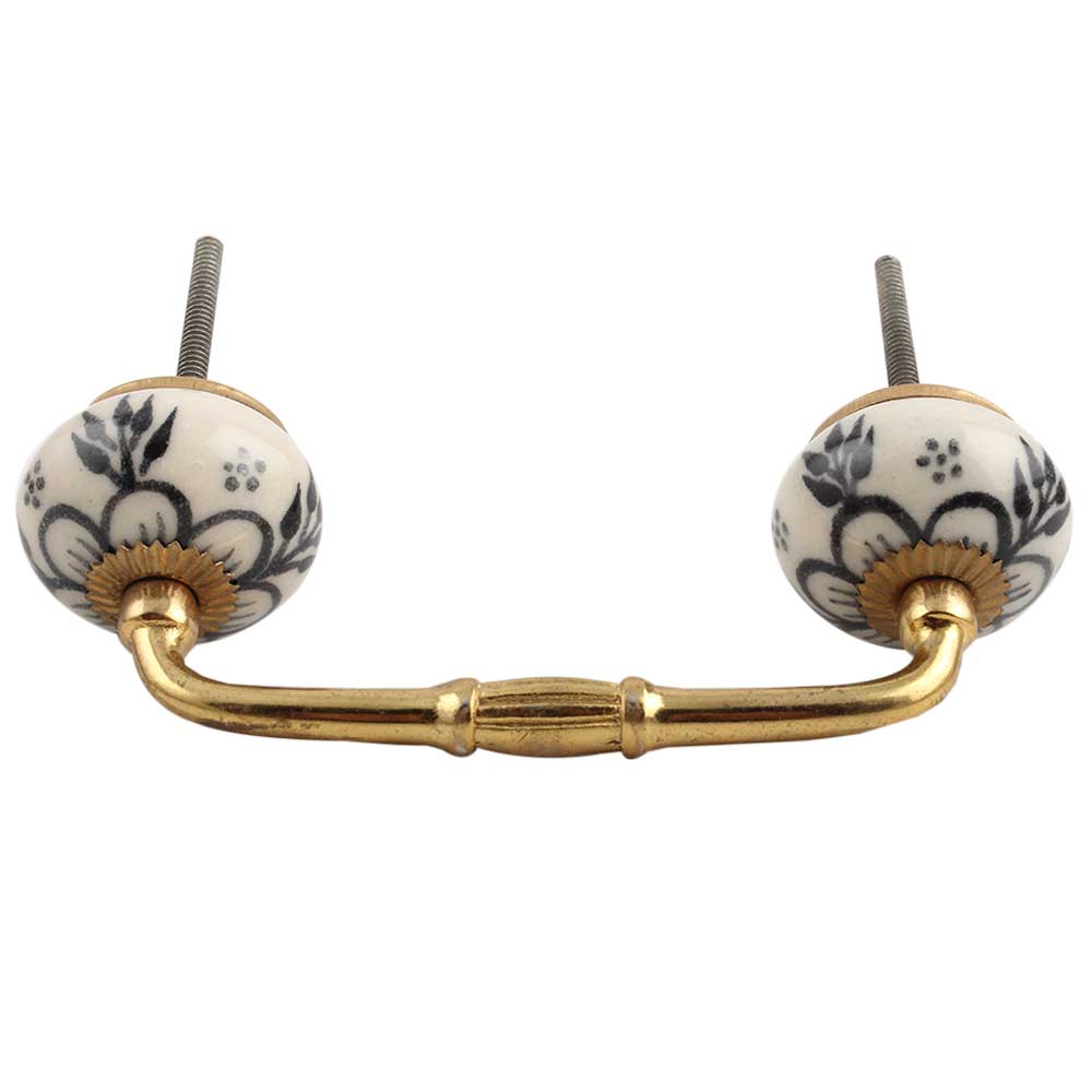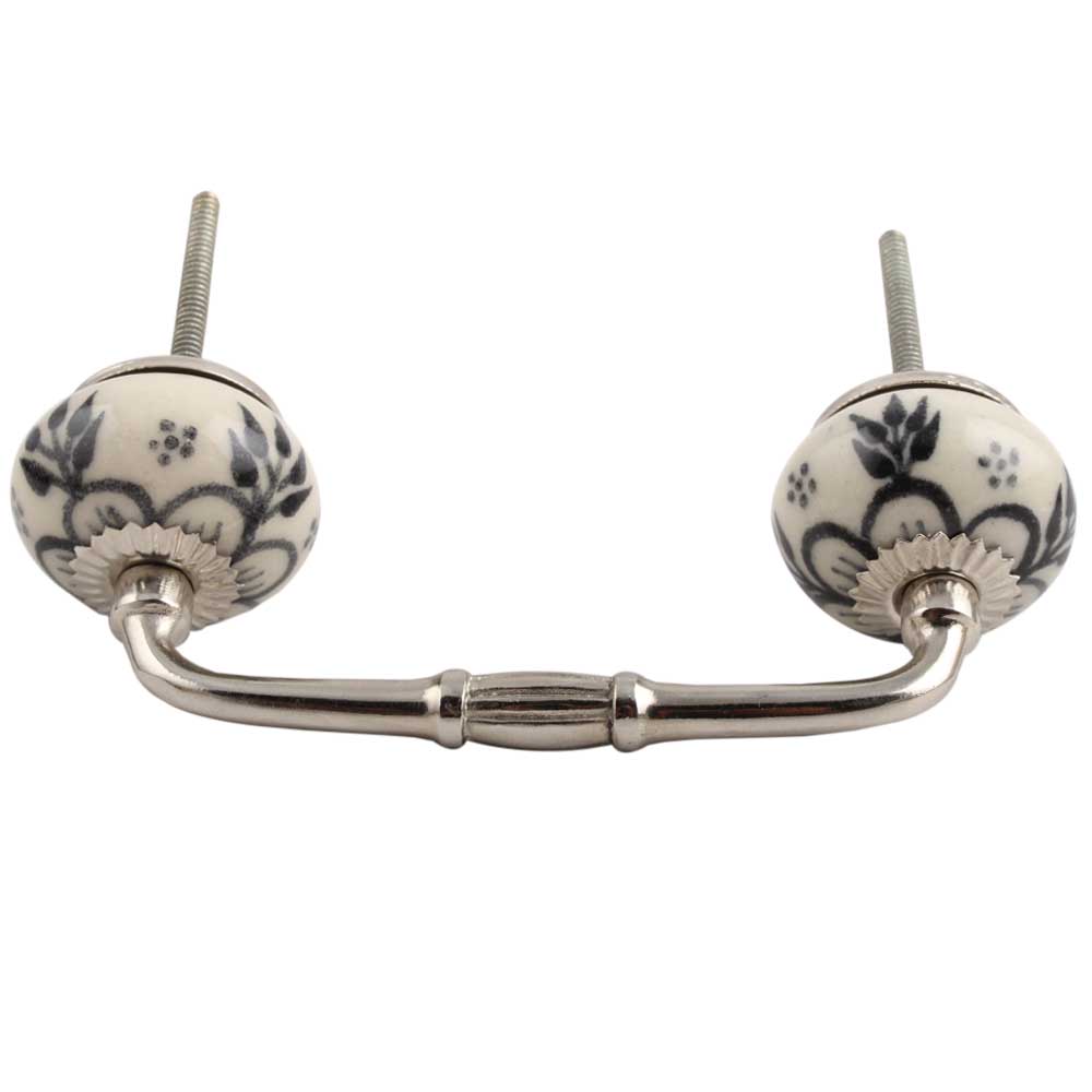 Black Leaf Round Ceramic Bridge Handle. Ideal for Drawer, Dresser, Cabinet, Wardrobe, Cupboard and Almirah.