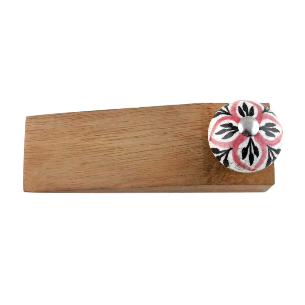 Handmade Ceramic and Wooden Door Stopper.Wooden Door Stopper with a Ceramic Knob to Carry it Easily. This Wooden Door Stopper has Glue Dots under it to Ensure that it does not Slip. It is Handmade by the Craftsmen of India and this Innovative Door Stopper won't Disappoint You.