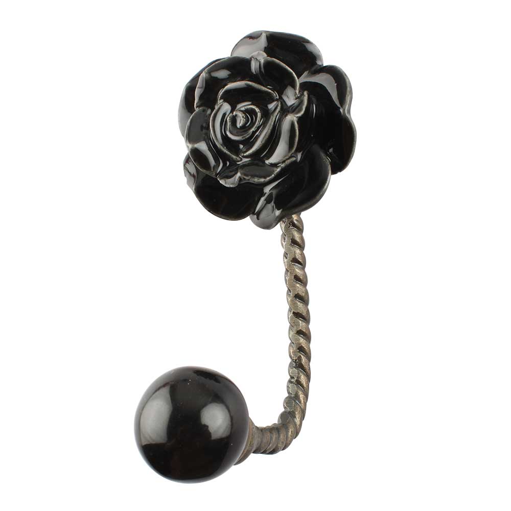 Black Rose Ceramic Iron Wall Hook in Antique Fitting. When Put on Wall or Cabinet It is An Art in Itself. This Hook is Strong Enough to Hold Your Keys, Tea Cups, Hand Towels, Cloths etc.