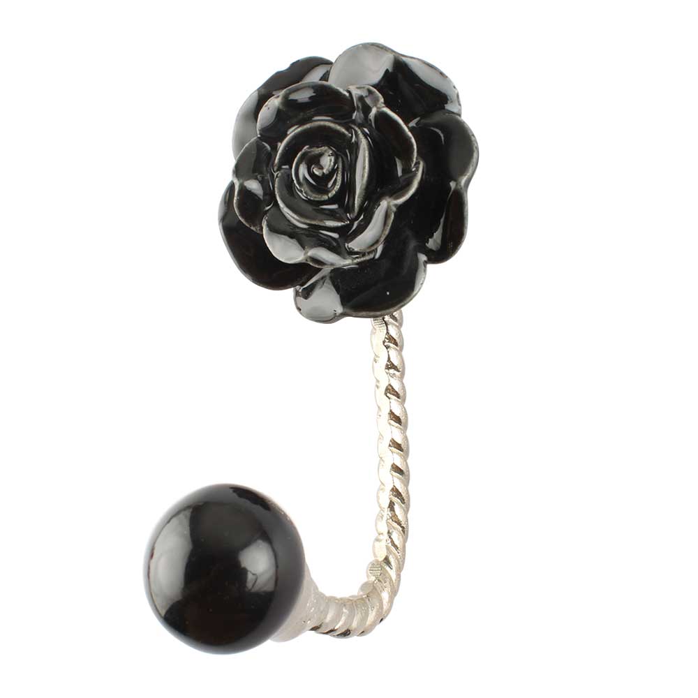 Black Rose Ceramic Iron Wall Hook in Silver Fitting. When Put on Wall or Cabinet It is An Art in Itself. This Hook is Strong Enough to Hold Your Keys, Tea Cups, Hand Towels, Cloths etc.