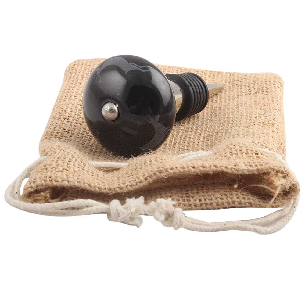 Black Runing Rein Deer Pattern Ceramic Wine Stopper.zinc alloy wine bottle stopper with attractive Jute Bag Packaging.