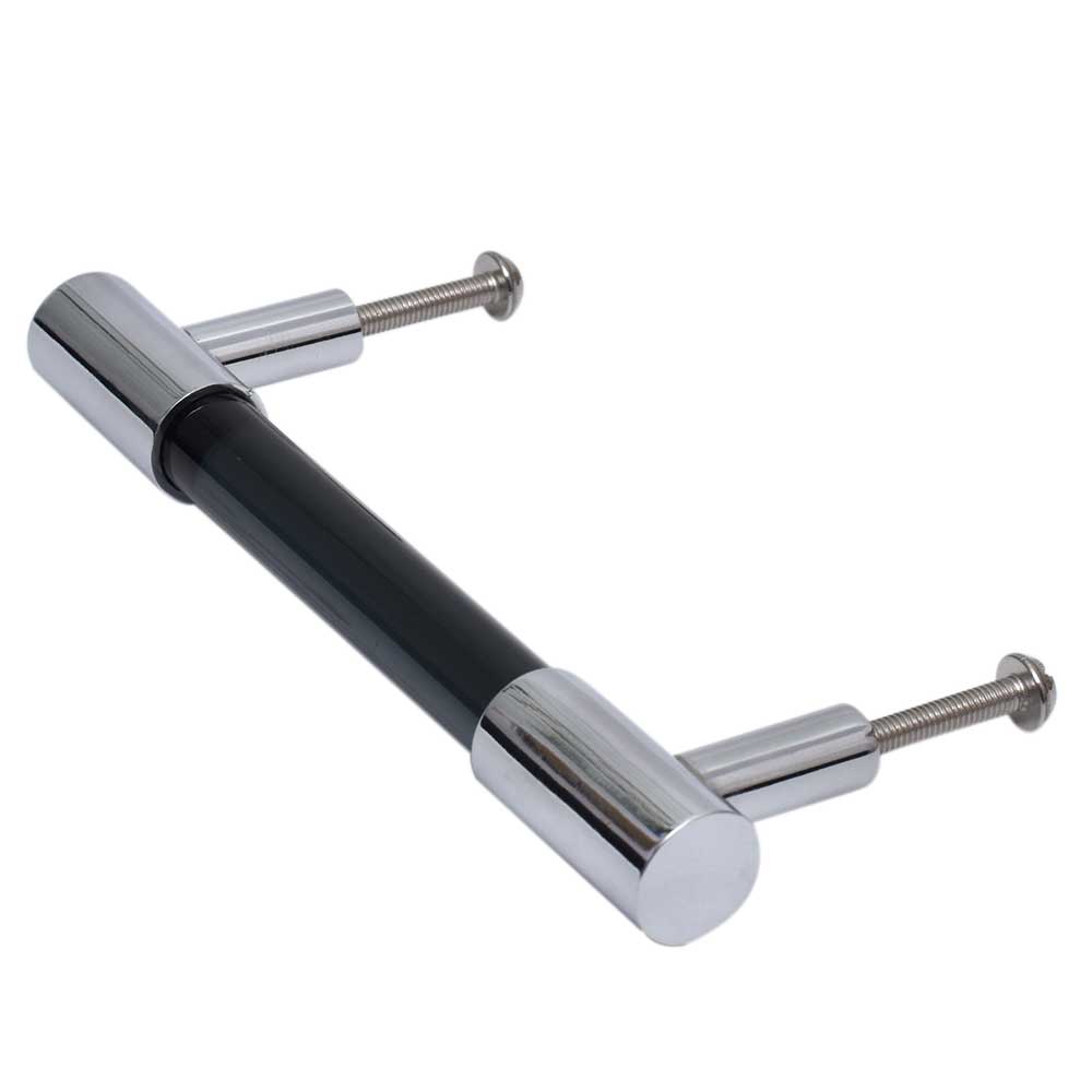Enhance your furniture with these exquisitely crafted black silver small cylinder glass door handles, designed to add a touch of sophistication and modern elegance to any space.