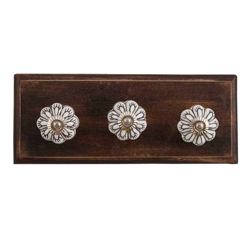 Black Spider Ceramic Wooden Hook. A Perfect Complement to the Soft Tone of the Wood are these White Traditional Hat & Coat Hook Made of Genuine Porcelain and Brass. It can be use to Hang Jewellery, Leashes, Towels, Scarves, Light Weight Sweaters, Caps Etc.