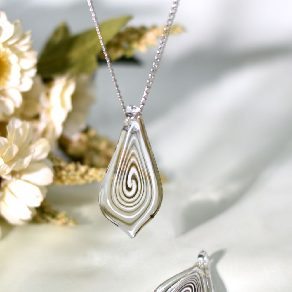 Embrace timeless sophistication with this Black Spiral Leaf Lampwork Glass Pendant, a stunning handcrafted piece that merges natural elegance with artisan skill. Designed in a flowing spiral leaf shape, this pendant captures the fluidity of movement and the allure of deep black glass. Each piece is handmade using the traditional lampwork technique, resulting in unique swirls, gentle curves, and a mirror-like finish — perfect for jewelry designers and collectors of artistic glasswork.