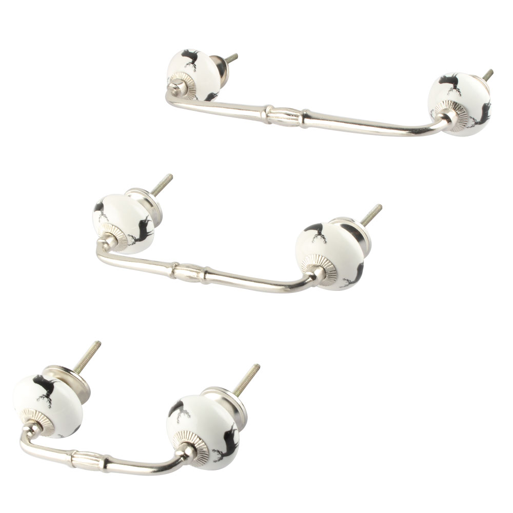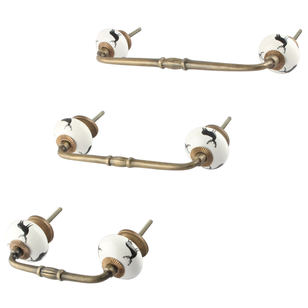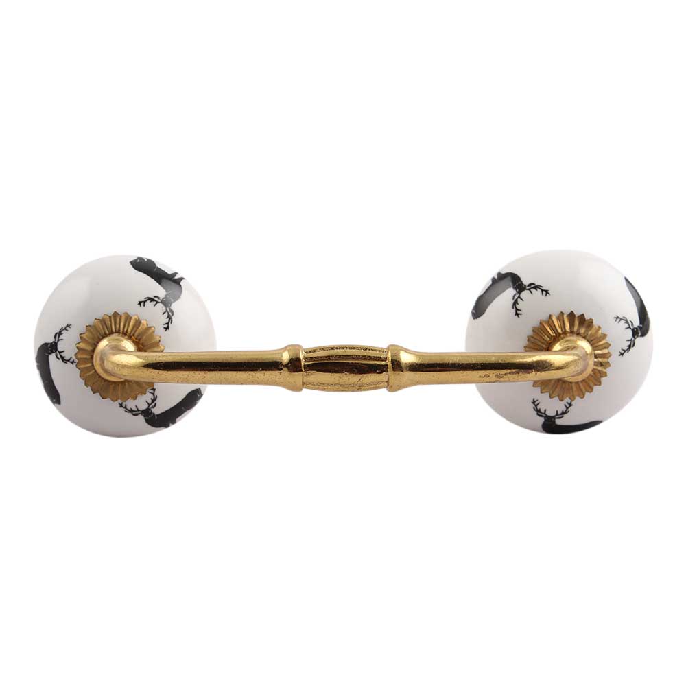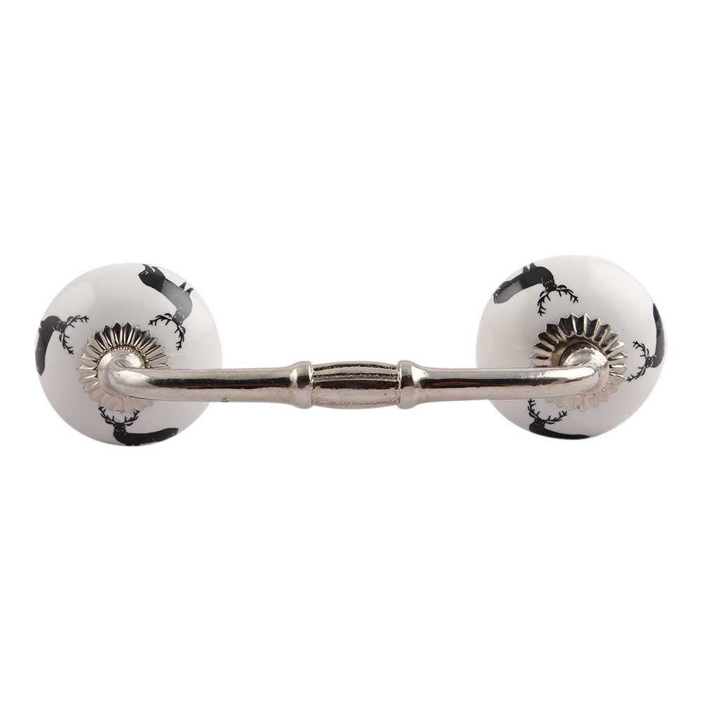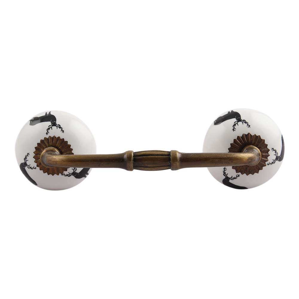 Black Standing Rein Deer Pattern Ceramic Bridge Handle. Ideal for Drawer, Dresser, Cabinet, Wardrobe, Cupboard and Almirah.