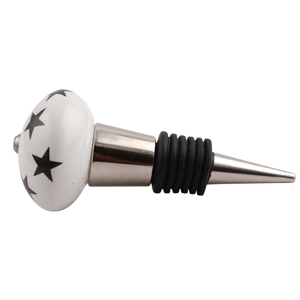Black Star Ceramic Wine Stopper.zinc alloy wine bottle stopper with attractive Jute Bag Packaging.