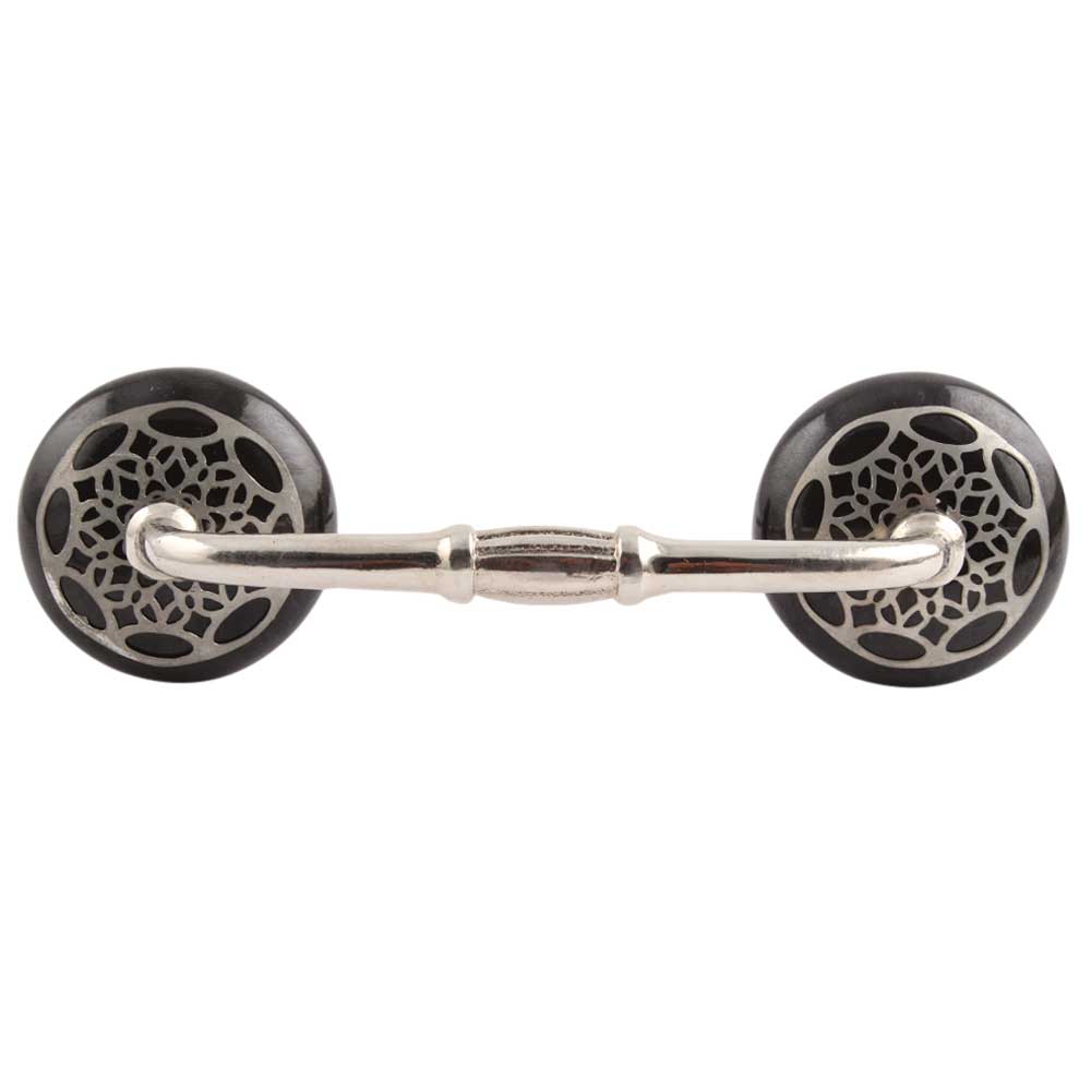 Black Strewn Flat Ceramic Bridge Handle. Ideal for Drawer, Dresser, Cabinet, Wardrobe, Cupboard and Almirah.
