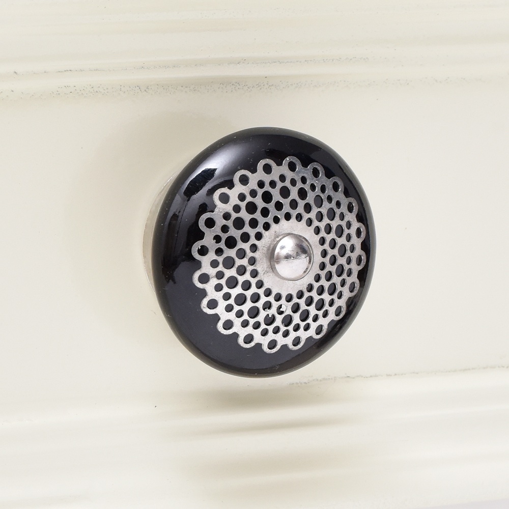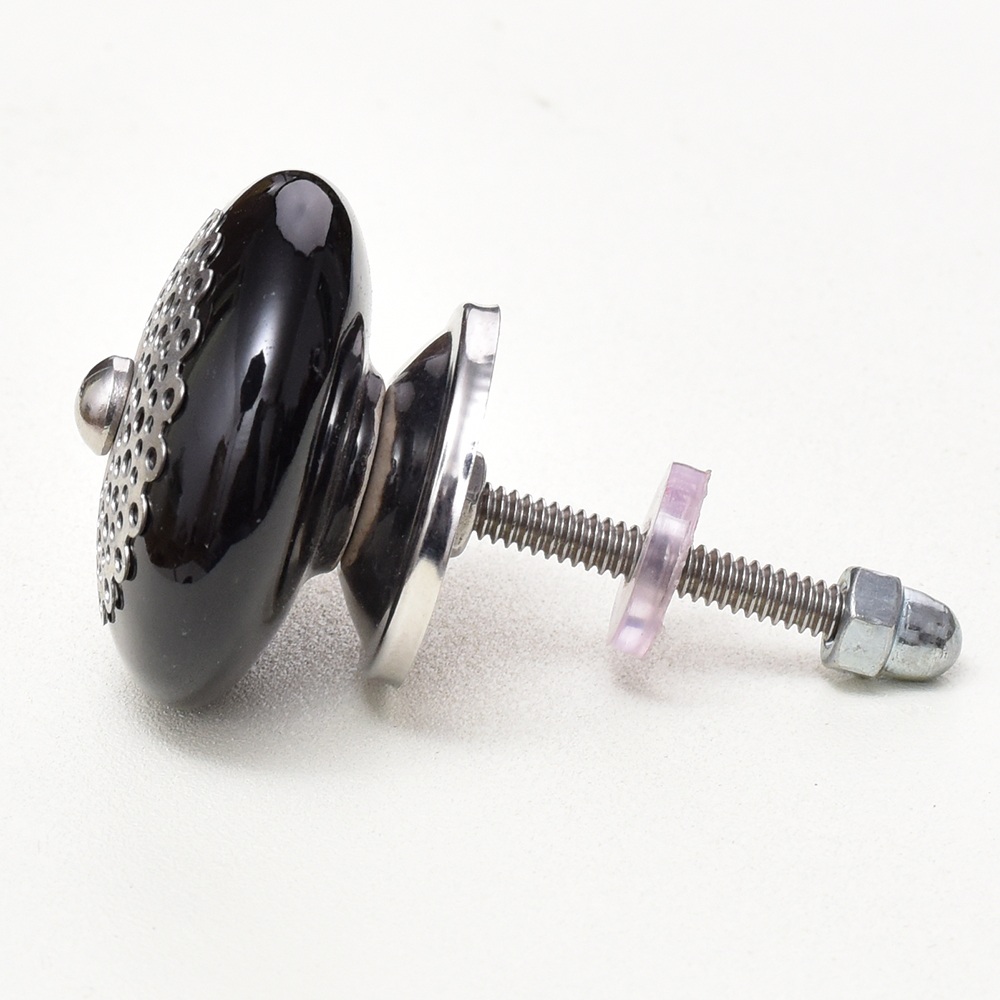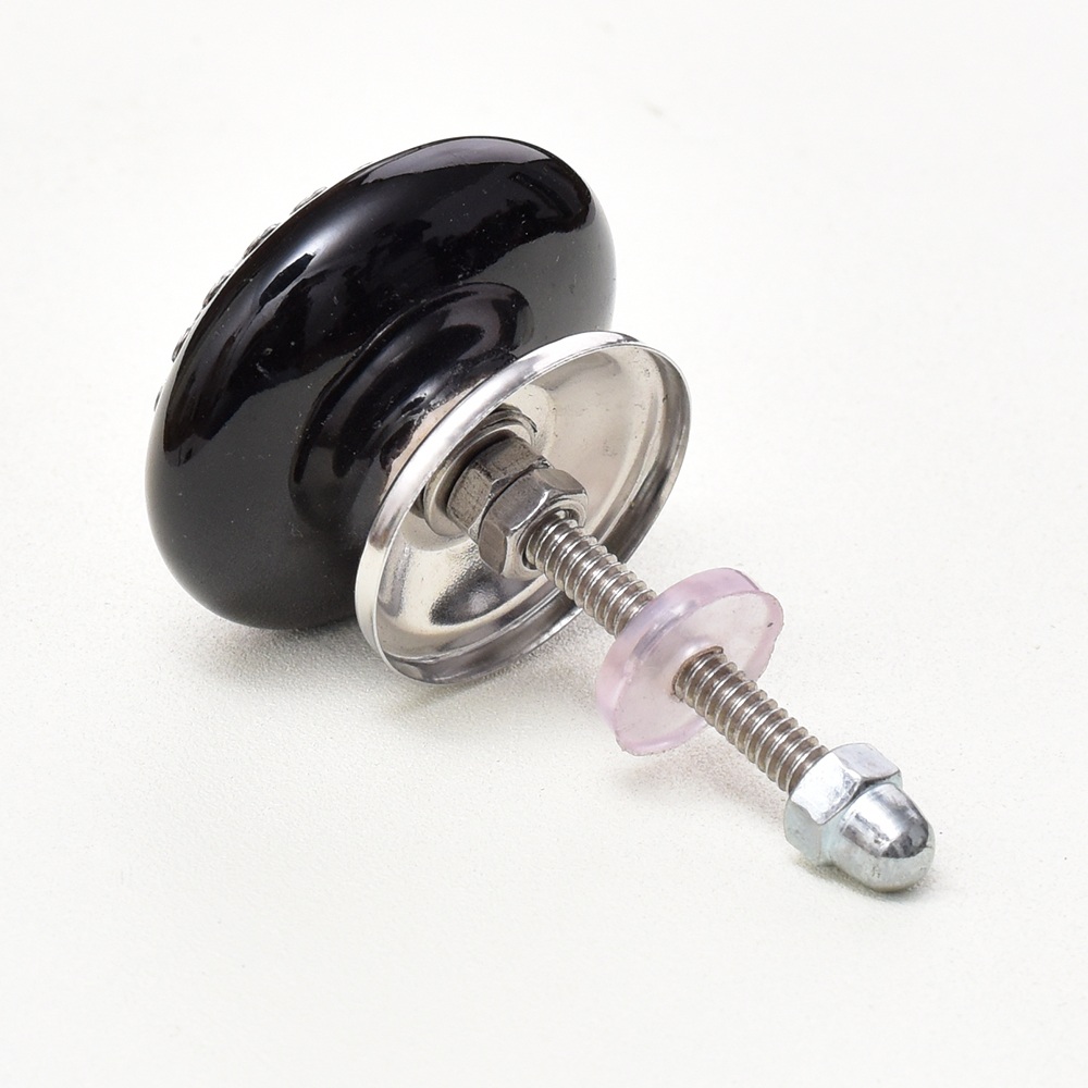 Introducing the Black Strewn Flat Ceramic Knob, a chic and contemporary hardware piece that effortlessly elevates the appearance of your cabinets, drawers, and furniture. With its minimalist design and sleek black finish, this knob brings a touch of sophistication to any modern or industrial-inspired space.