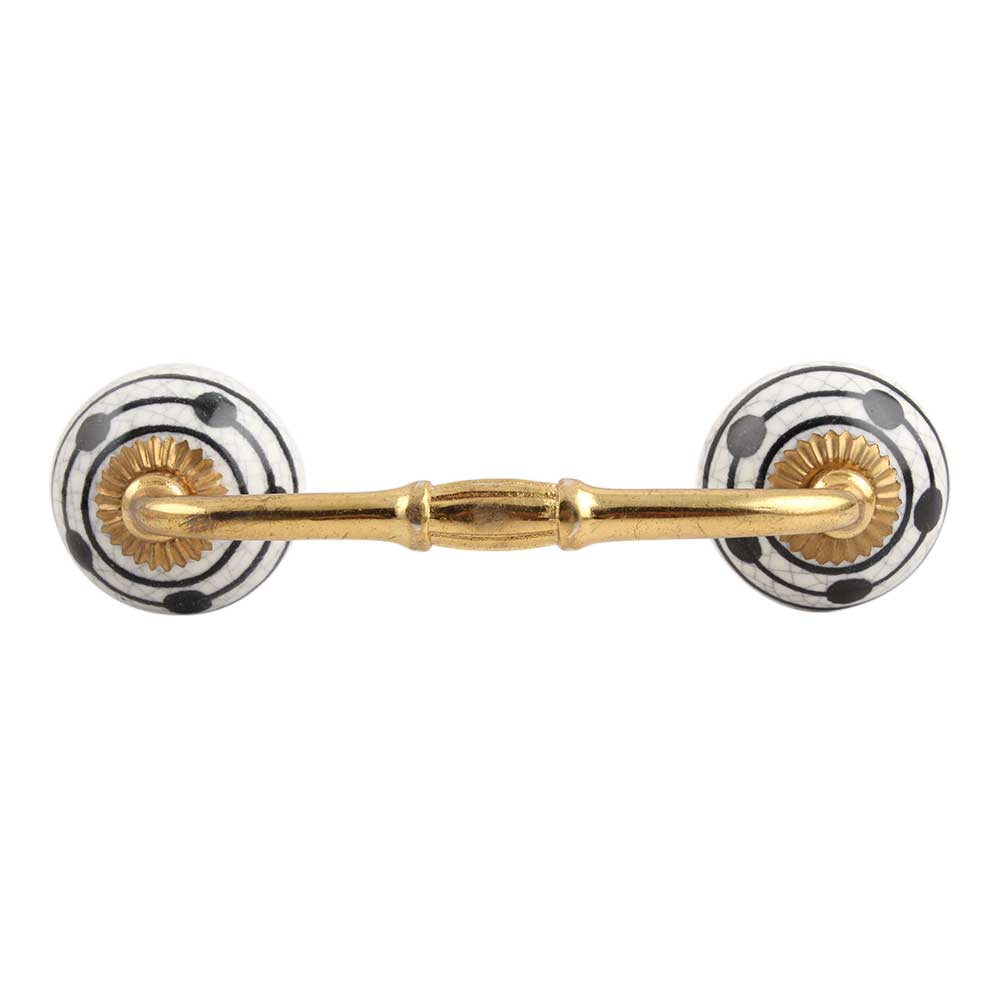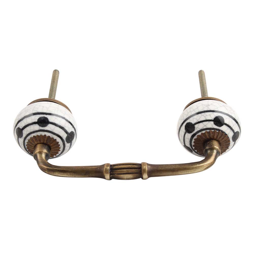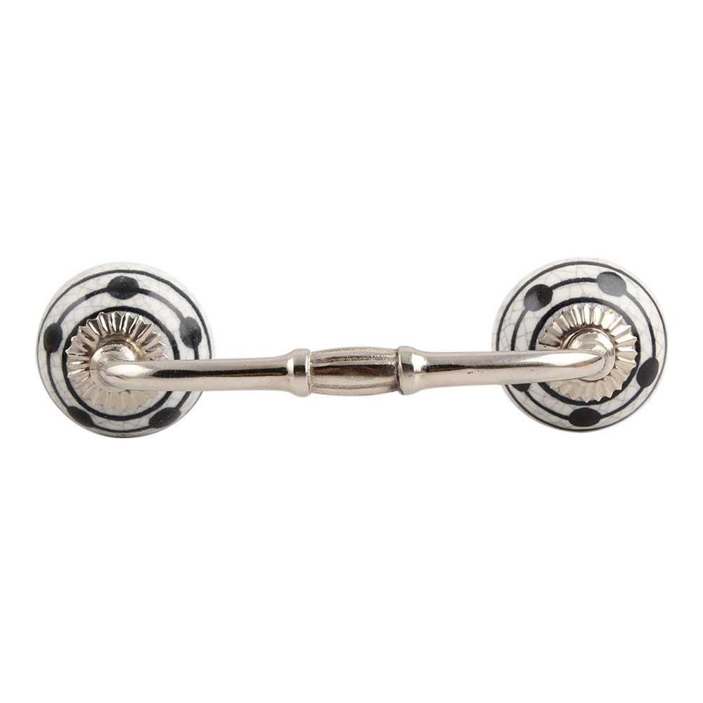 Black Striped Dotted Crackle Ceramic Bridge Handle. Ideal for Drawer, Dresser, Cabinet, Wardrobe, Cupboard and Almirah.