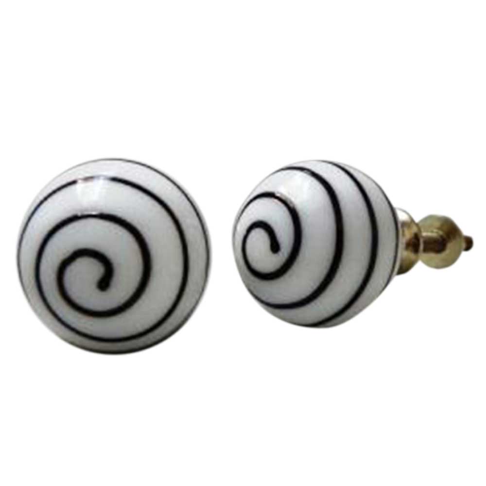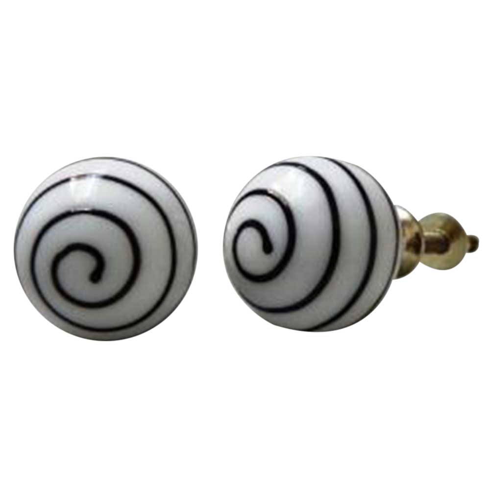Black Striped White Round Glass Knobs. Ideal for Drawer, Dresser, Cabinet, Wardrobe, Cupboard and almirah