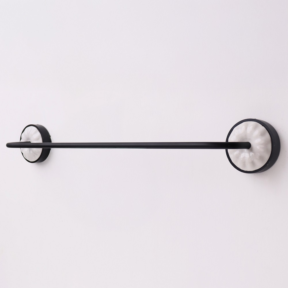 Add a sleek and vintage touch to your bathroom with this wall-mounted black white aluminum and ceramic towel bar. Designed with an intricately carved floral base, it brings elegance and utility together. The sturdy aluminum construction is lightweight, rust-resistant, and ideal for humid bathroom environments. Perfect for hanging bath towels or drying clothes, this towel rod blends effortlessly with both modern and traditional interiors.
