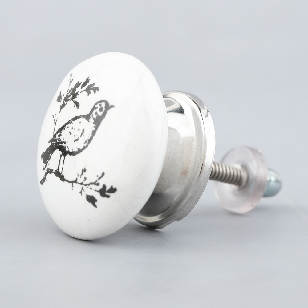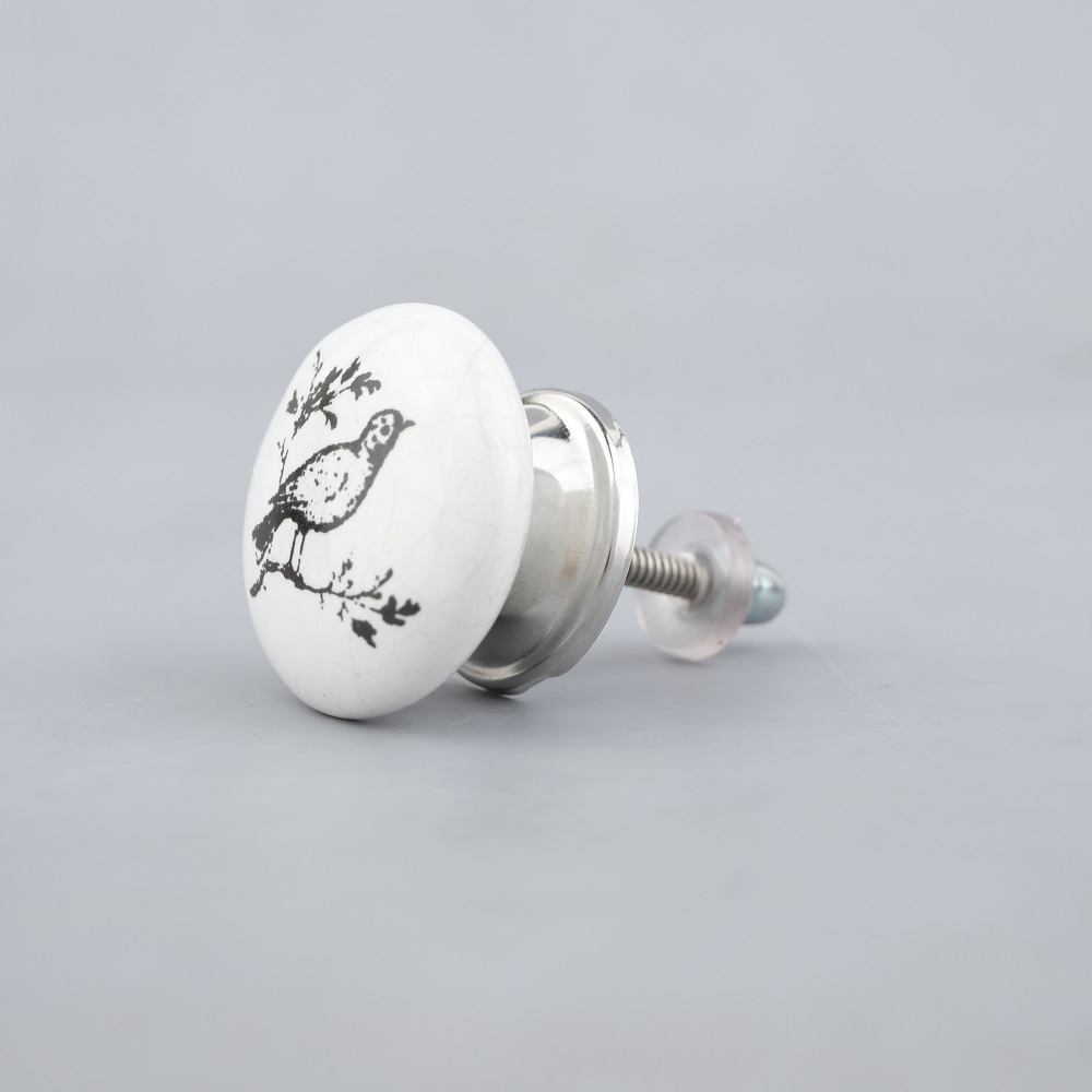This knob features a graceful bird design that is not only functional but also serves as a delightful decorative accent. The contrast of black and white creates a timeless aesthetic that fits seamlessly into both modern and traditional interiors.
