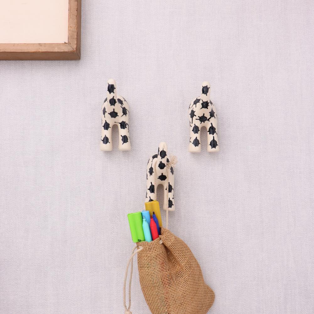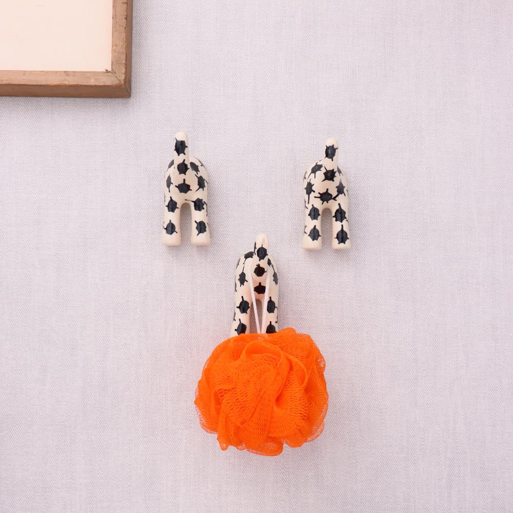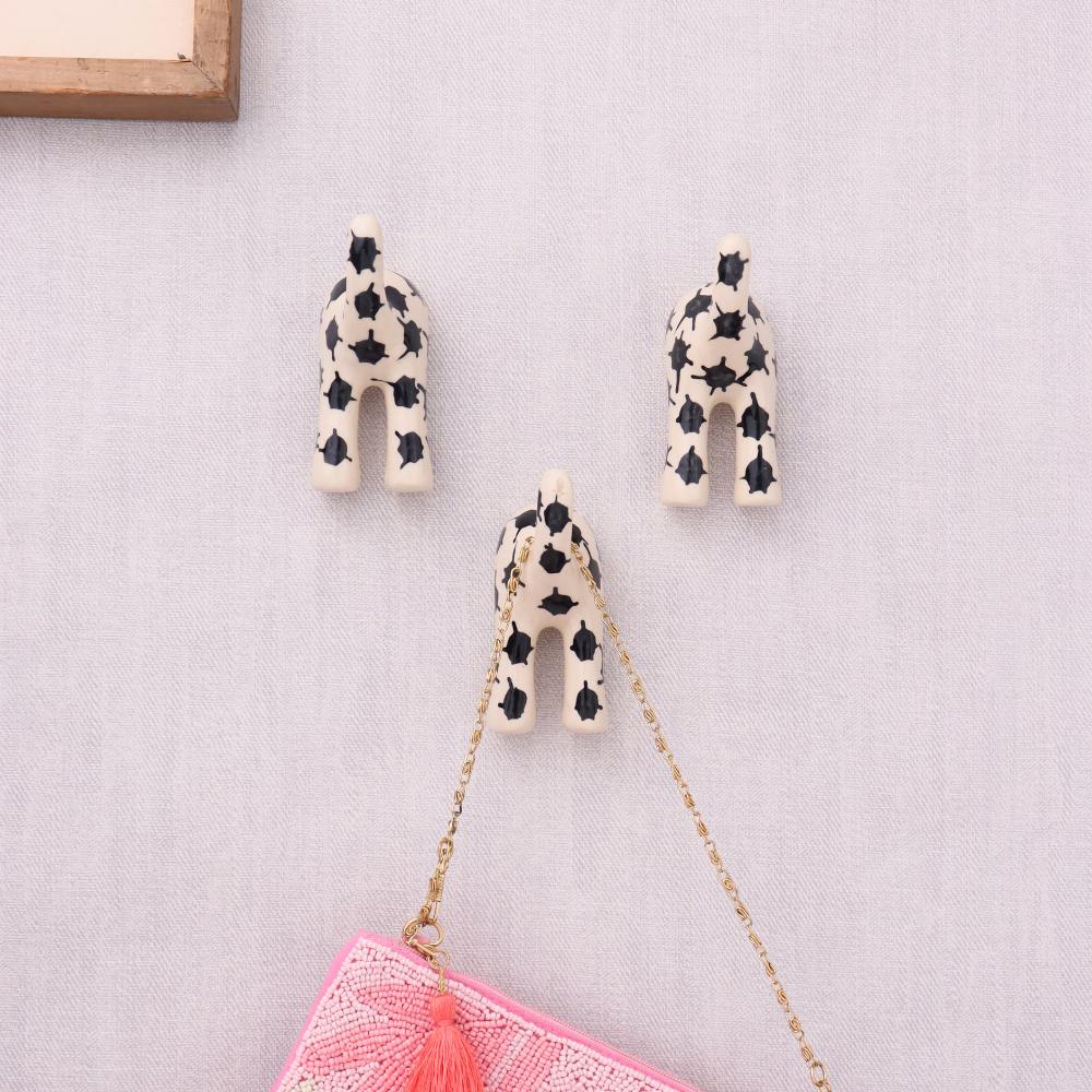 Black White Ceramic Dog Tail Shaped Wall Hooks Set of 3. This Hook is Strong Enough to Hold Your Cloths, Keys, Tea Cups, Coffee Mugs, Hand Towels Etc.