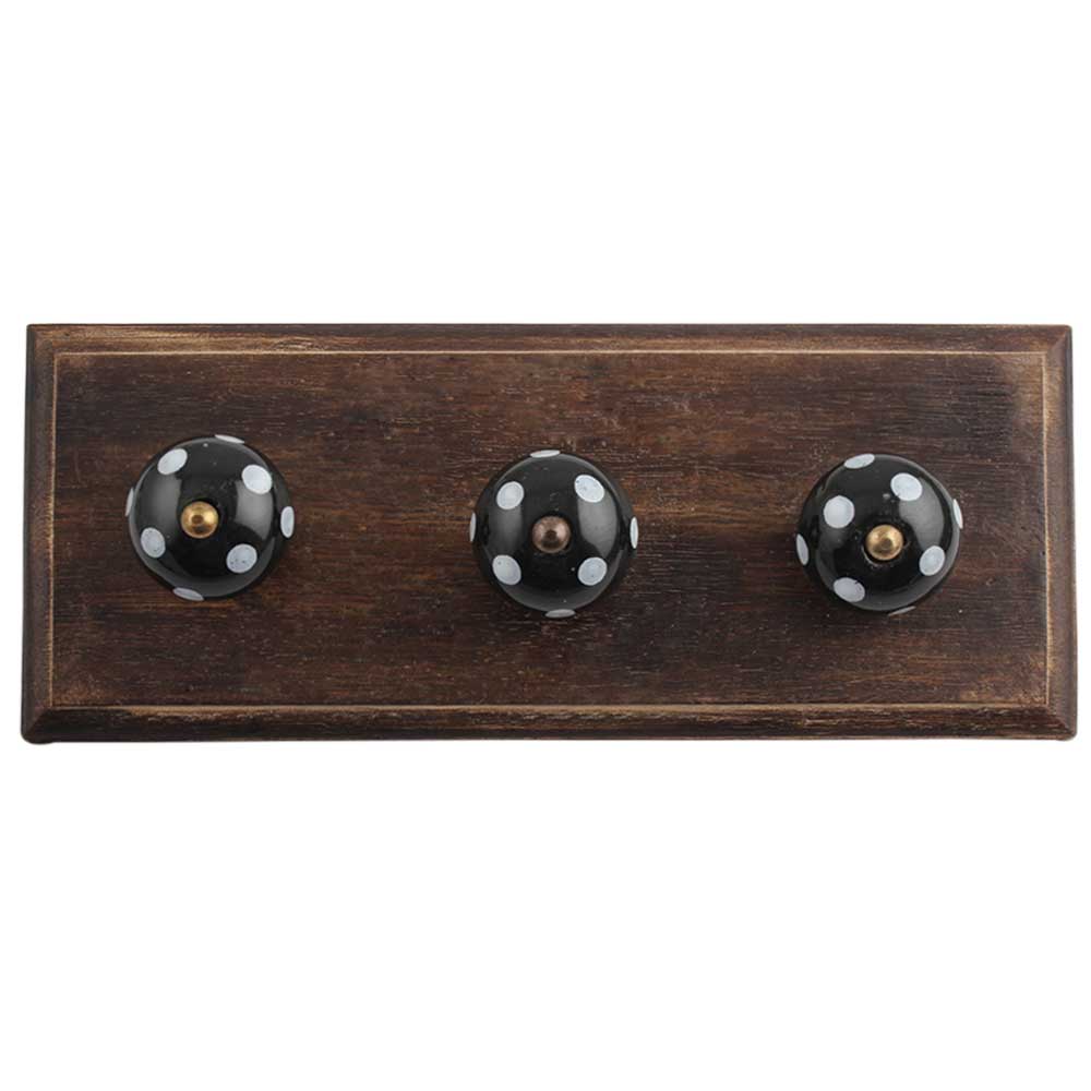Black White Dot Wooden Hooks . A Perfect Complement to the Soft Tone of the Wood are these White Traditional Hat Coat Hook Made of Genuine Porcelain and Brass. It can be use to Hang Jewellery, Leashes, Towels, Scarves, Light Weight Sweaters, Caps Etc.