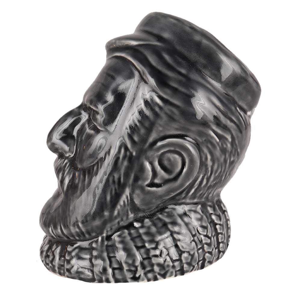 This statue is modeled after Ernest Hemingway, who is dressed in a cap and a thick nautical-style sweater. Glazed in a dark blue glaze (petrol blue). The pullover, in particular, matches the one worn by Hemingway in a shot taken by renowned portrait photographer , which is one of the most iconic images of Ernest Hemingway.