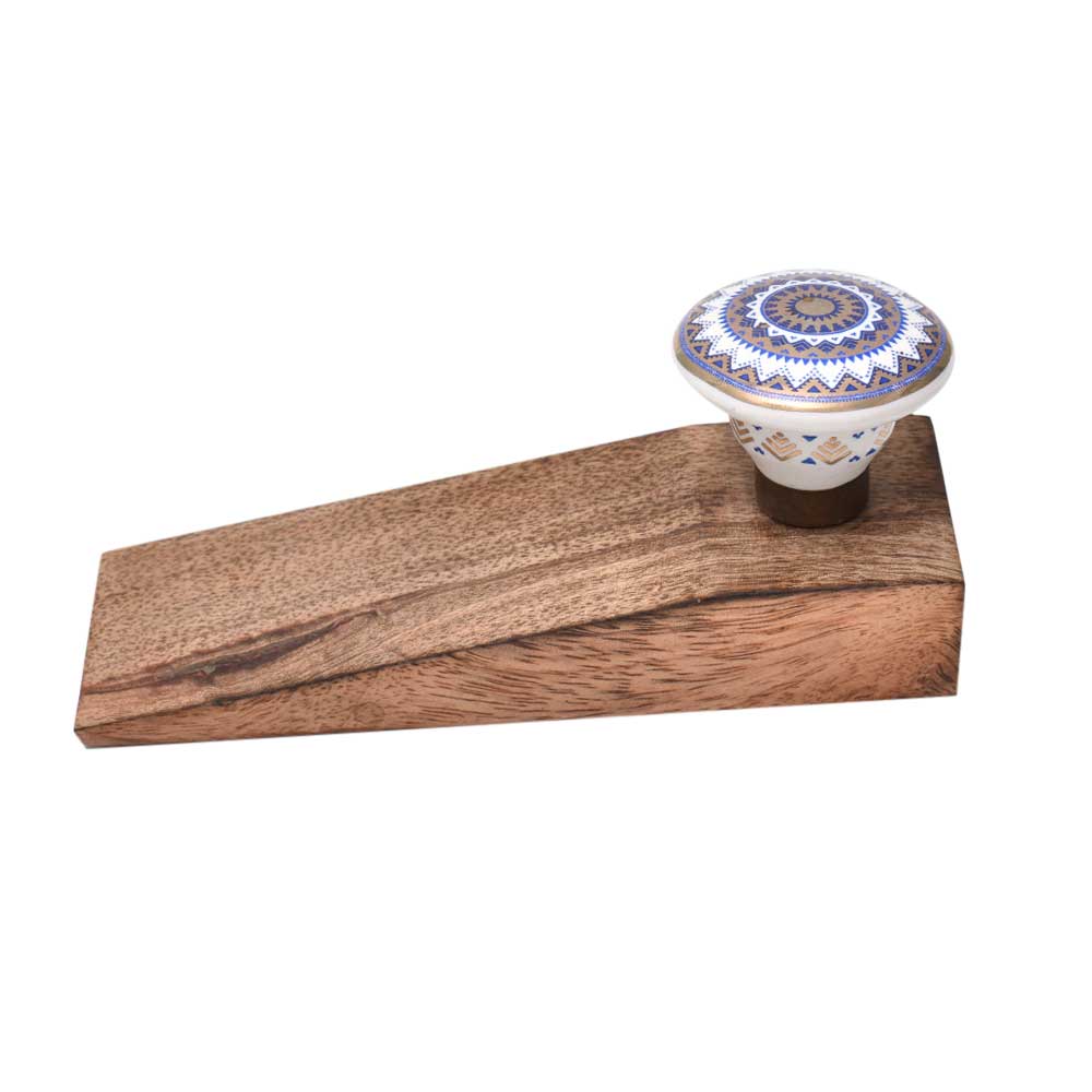 Handmade Ceramic Wooden Door Stopper.Wooden Door Stopper with a Ceramic Knob to Carry it Easily. This Wooden Door Stopper has Glue Dots under it to Ensure that it does not Slip. It is Handmade by the Craftsmen of India and this Innovative Door Stopper won't Disappoint You.