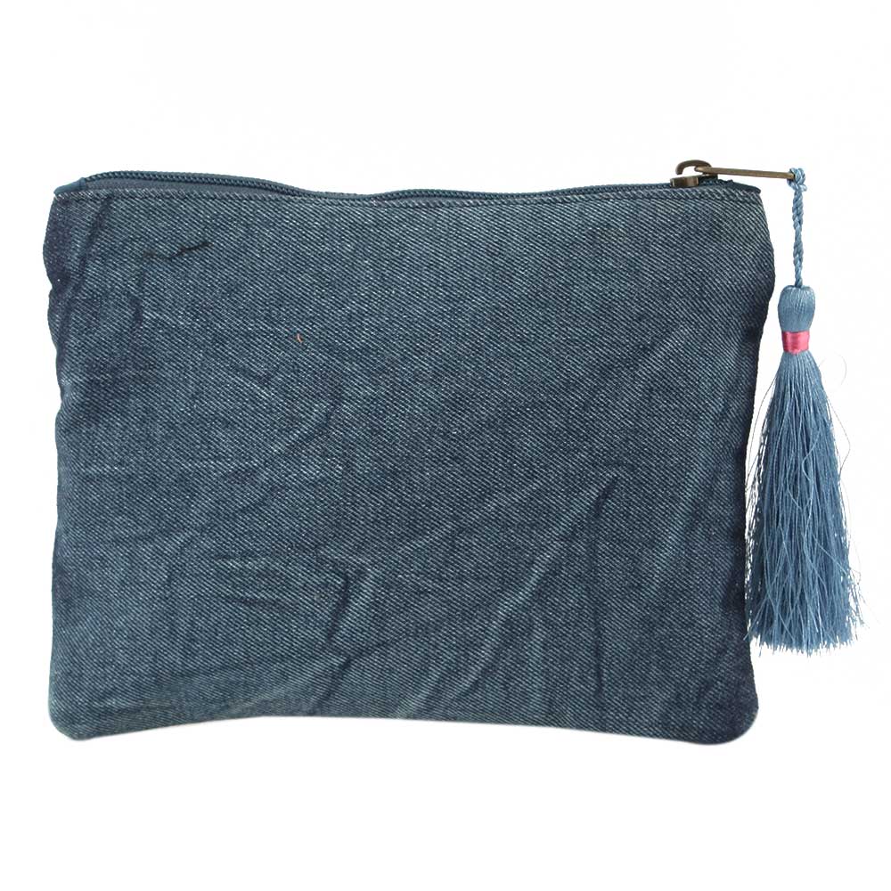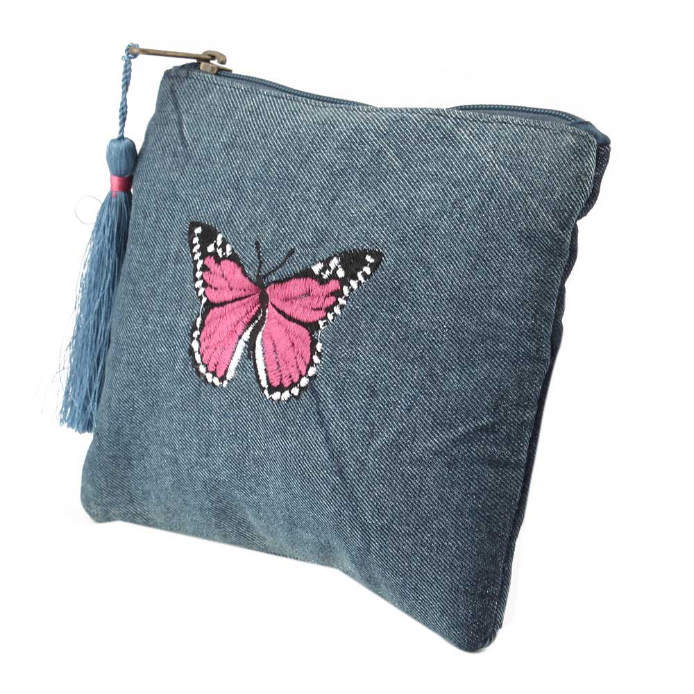 Blue Butterfly embroidered denim zip top cutch bag is perfect for shopping, gym, work, school and vacation.