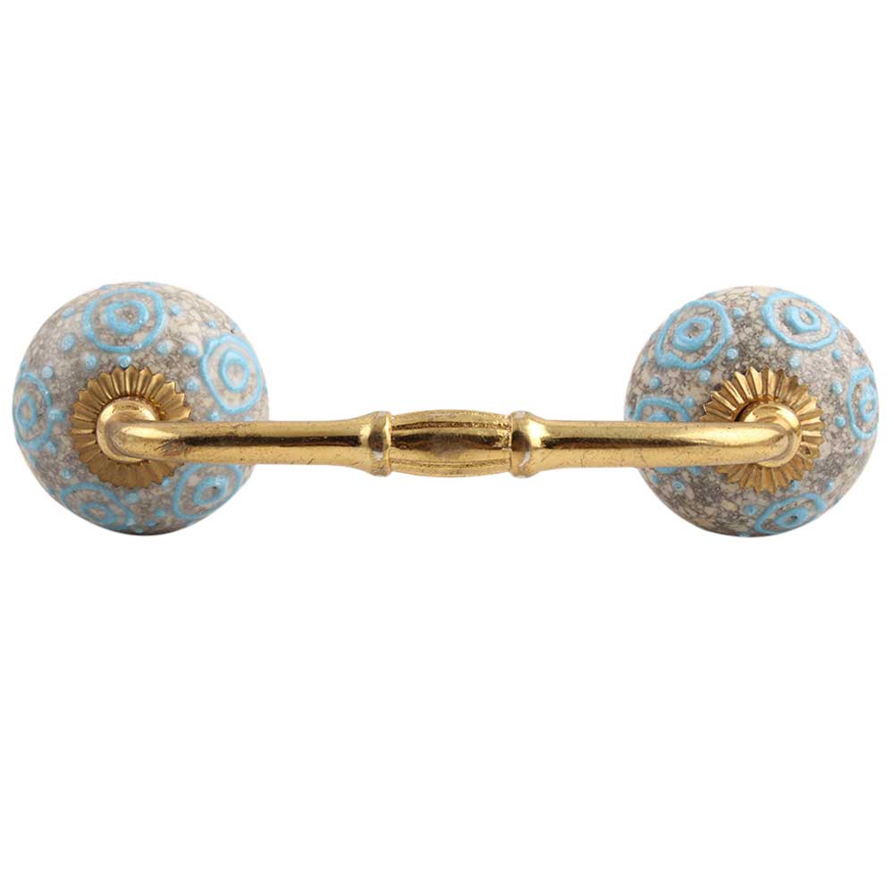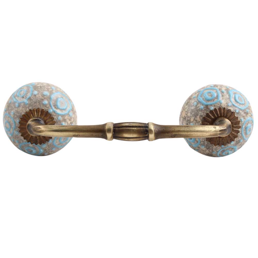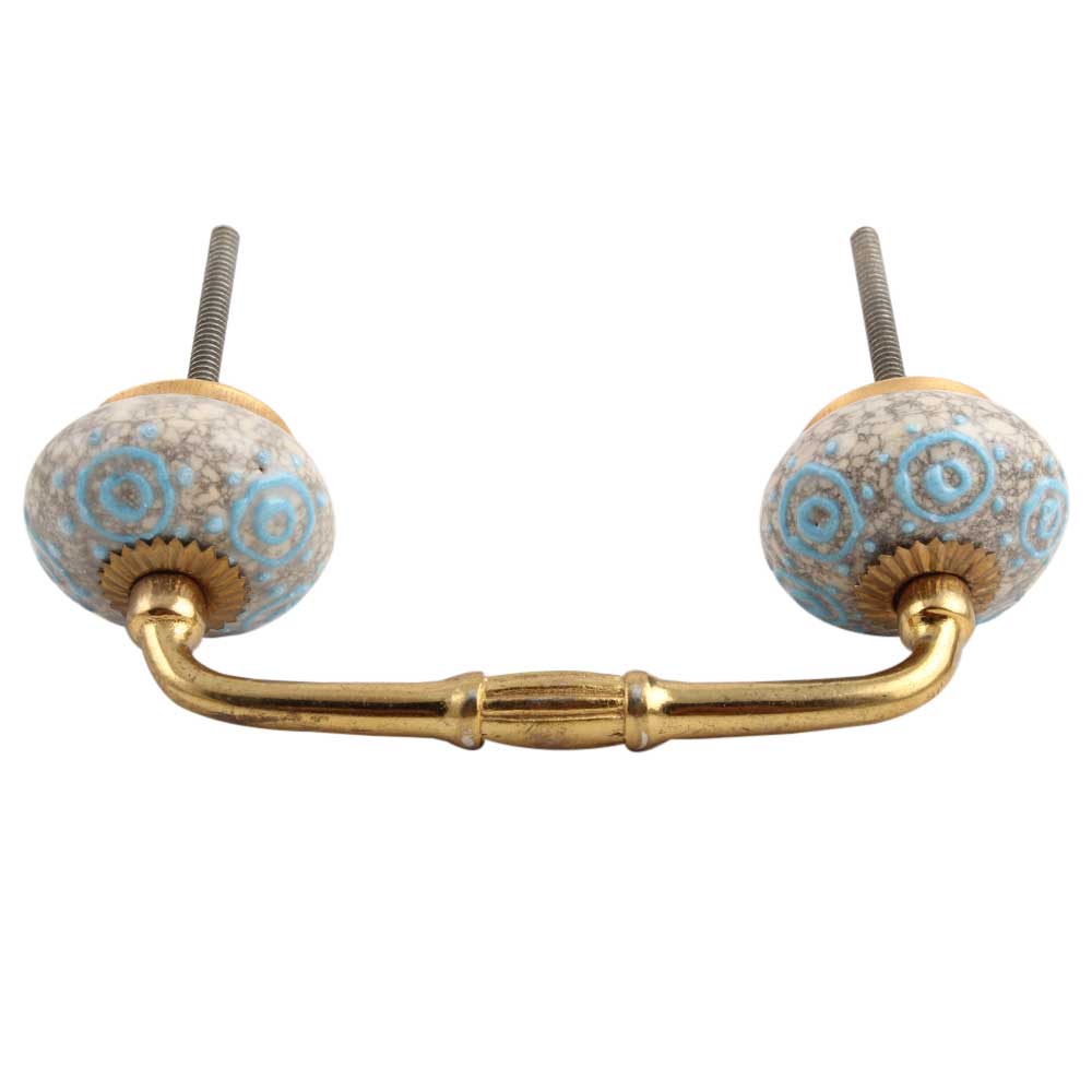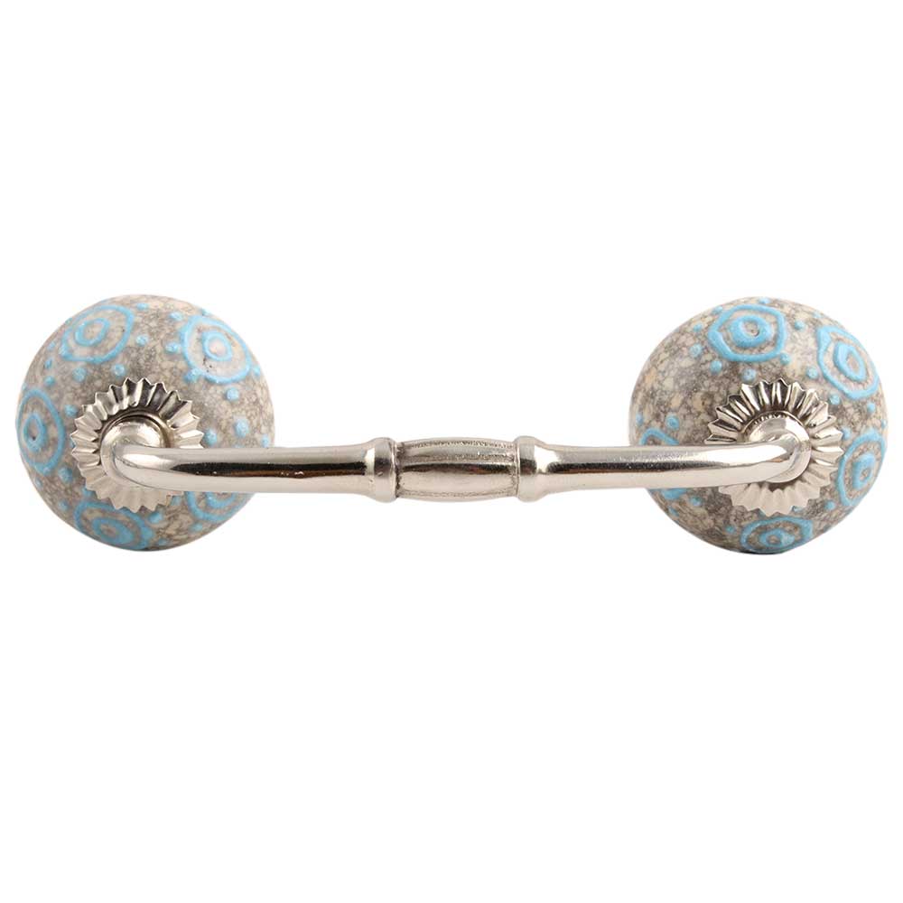 Blue Circles Crackle Ceramic Bridge Handle. Ideal for Drawer, Dresser, Cabinet, Wardrobe, Cupboard and Almirah etc.
