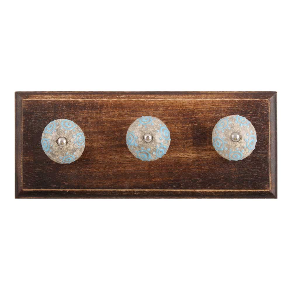 Blue Circles Crackle Ceramic Wooden Hook. A Perfect Complement to the Soft Tone of the Wood are these White Traditional Hat and Coat Hook Made of Genuine Porcelain and Brass. It can be used to Hang Jewelry, Leashes, Towels, Scarves, Light Weight Sweaters, Caps etc.