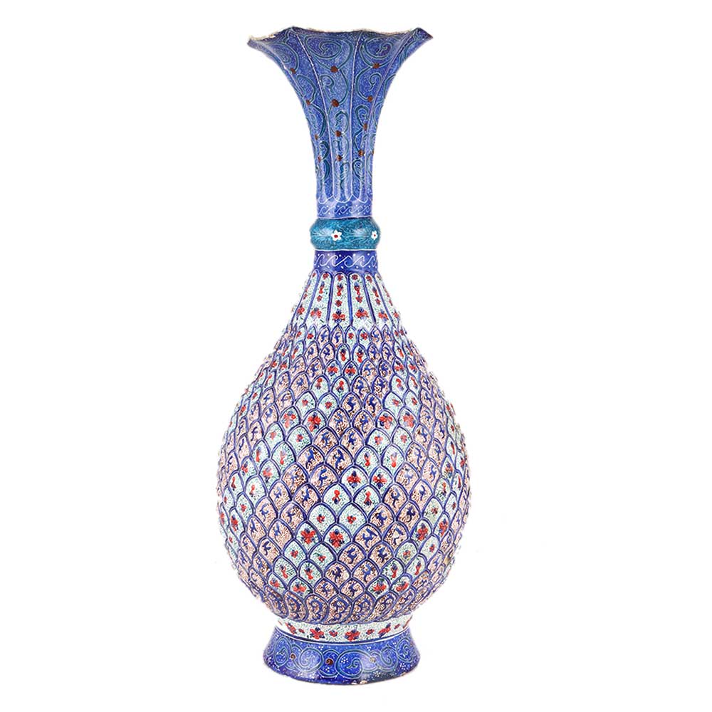 Enameling, also known as "Mina kari," is a particular colouring procedure that uses mina glaze to paint ornamental plates, jars, and urns. The skill of painting, colouring, and ornamenting the surface of metals by fusing vivid colours that are embellished in an exquisite design is known as miniature of flame. Mina refers to the hue of heaven, Azure. It would make an excellent gift for family or friends.