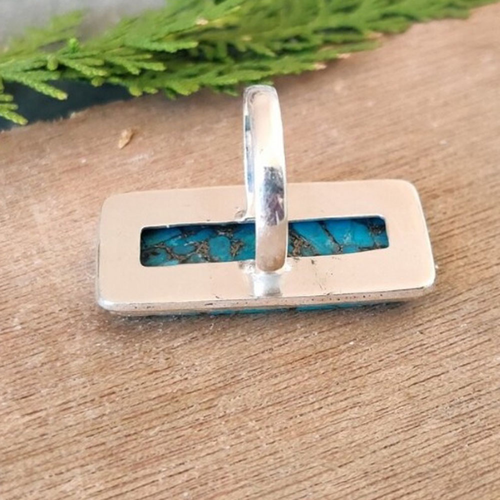Adorn yourself with this ring crafted with natural blue copper turquoise (cabochon), 925 sterling silver and boho. It exudes modern simplicity and stands out in any collection, ideal for stylish individuals.
