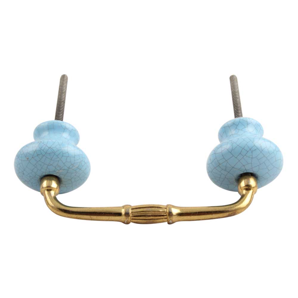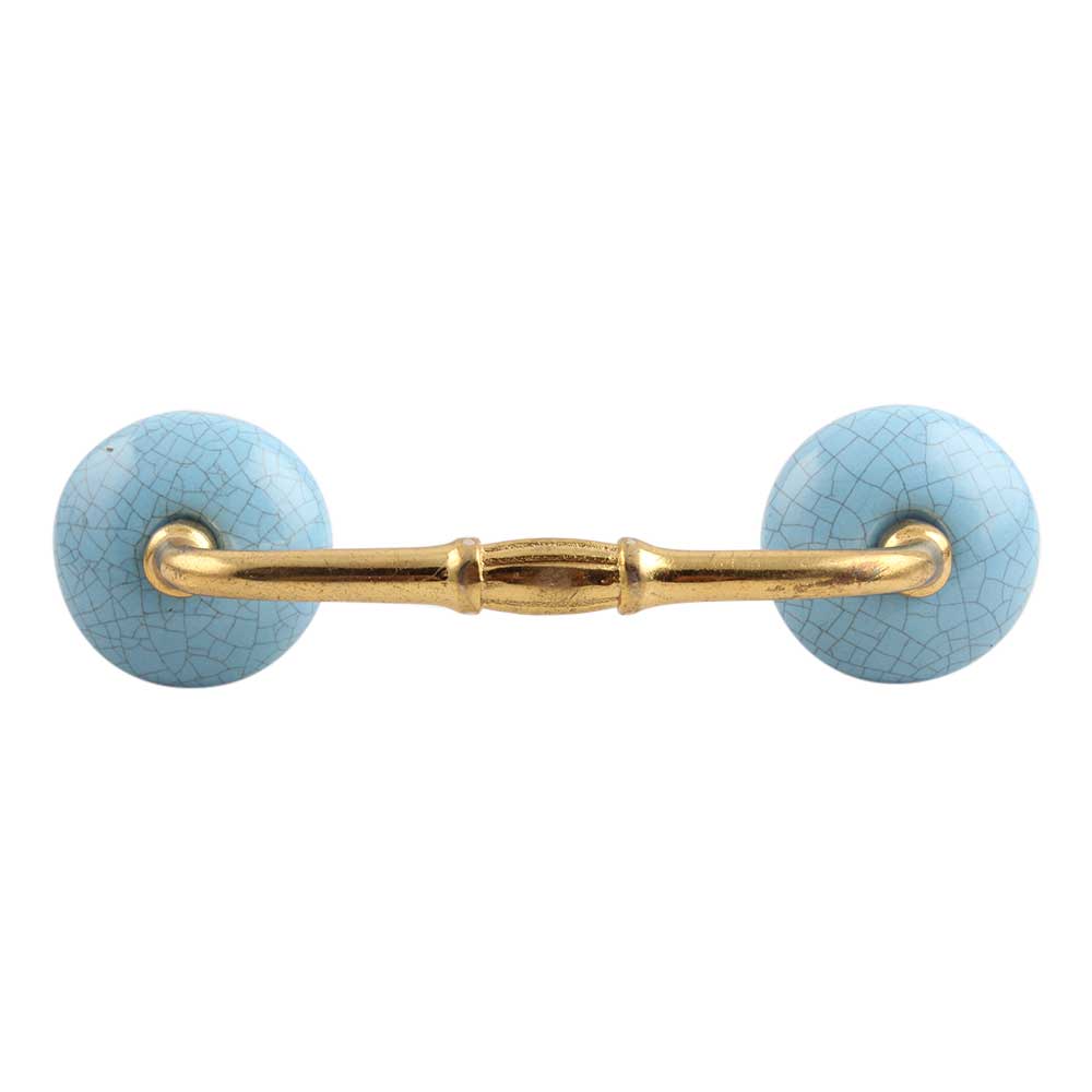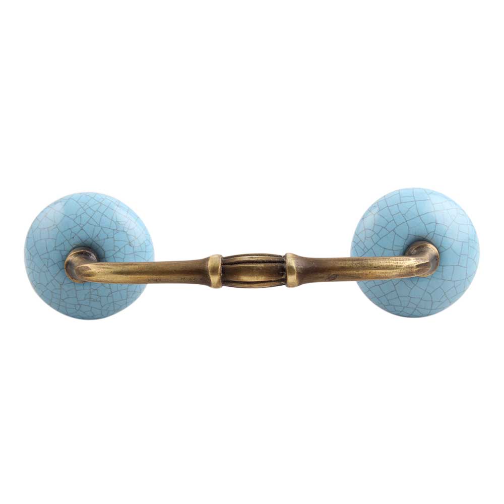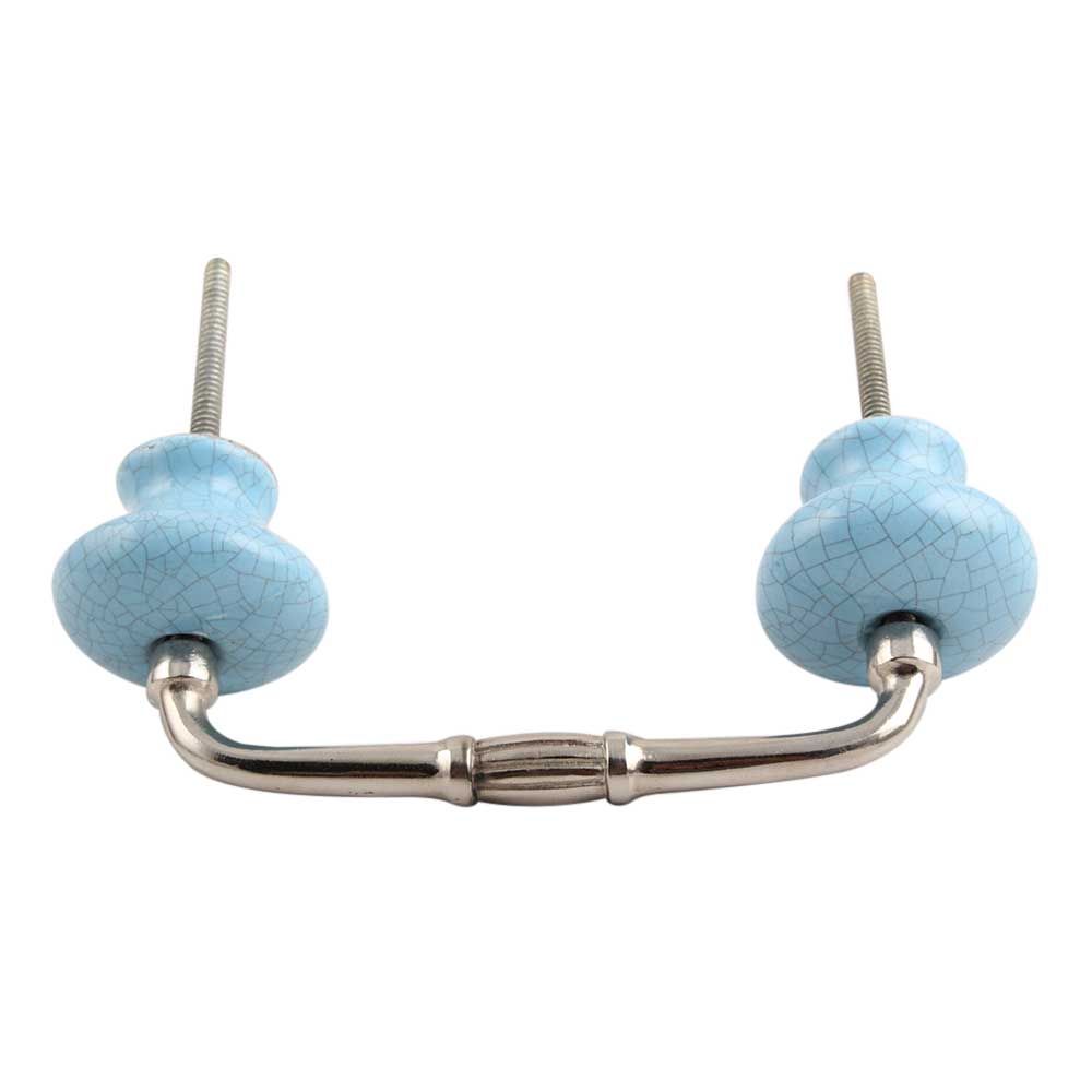 Blue Crackle Ceramic Bridge Handle. Ideal for Drawer, Dresser, Cabinet, Wardrobe, Cupboard and Almirah.