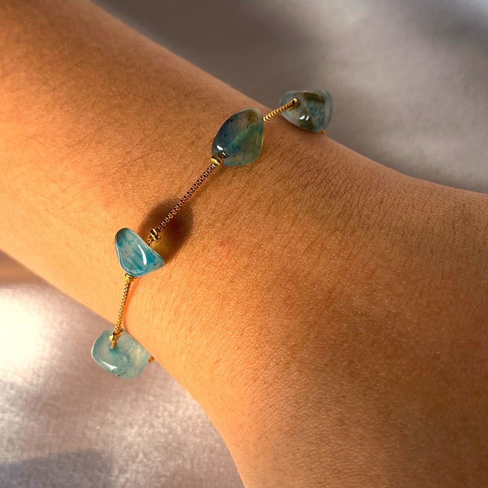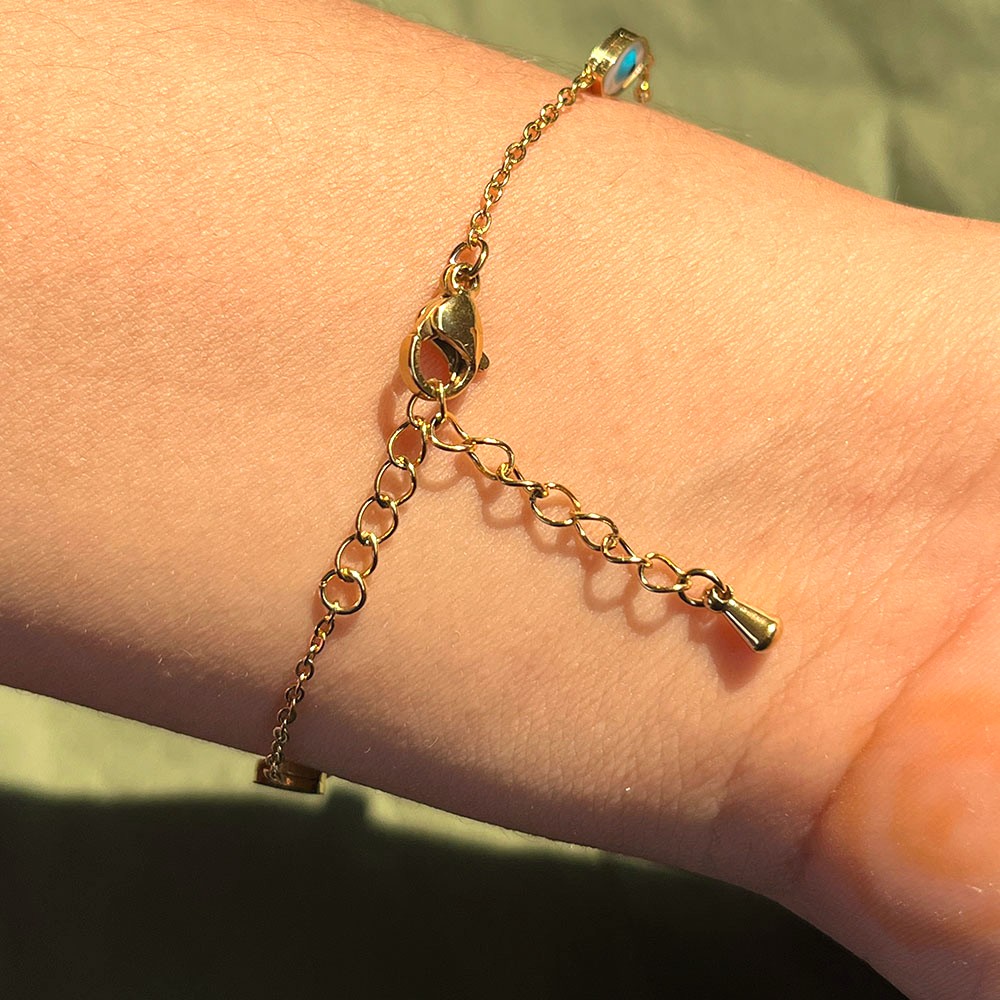 Striking yet serene, the Blue Crystal Charm 18K Gold Plated Bracelet brings a cool spark of color to a warm golden base. Crafted from stainless steel and finished in a luminous 18K gold plating, the bracelet features a blue crystal charm that catches light with subtle brilliance. The contrast feels intentional—gold for warmth, blue for balance. It’s a piece that reads as elegant at first glance and thoughtful on closer look.