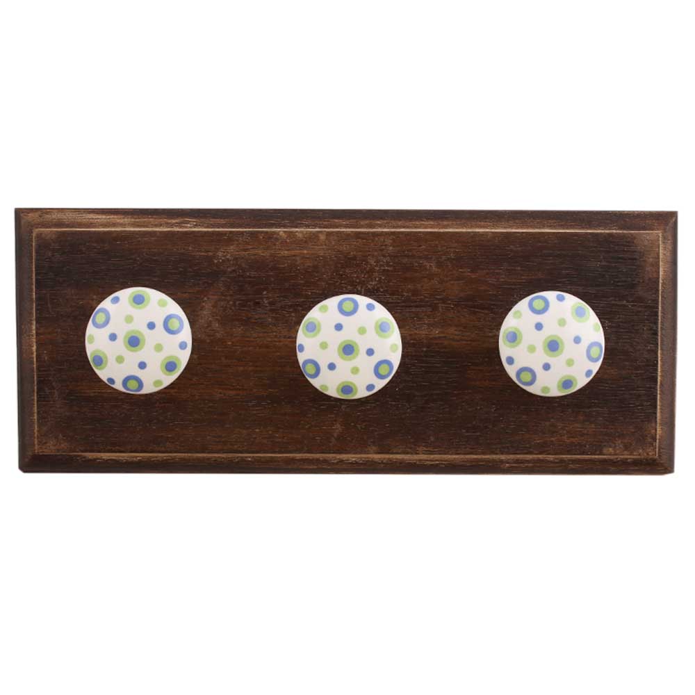 Blue Dot Ceramic Wooden Hook. A Perfect Complement to the Soft Tone of the Wood are these White Traditional Hat Coat Hook Made of Genuine Porcelain and Brass. It can be use to Hang Jewellery, Leashes, Towels, Scarves, Light Weight Sweaters, Caps Etc.