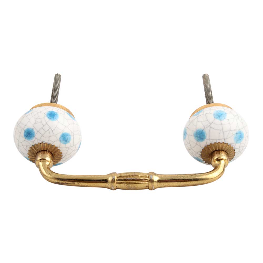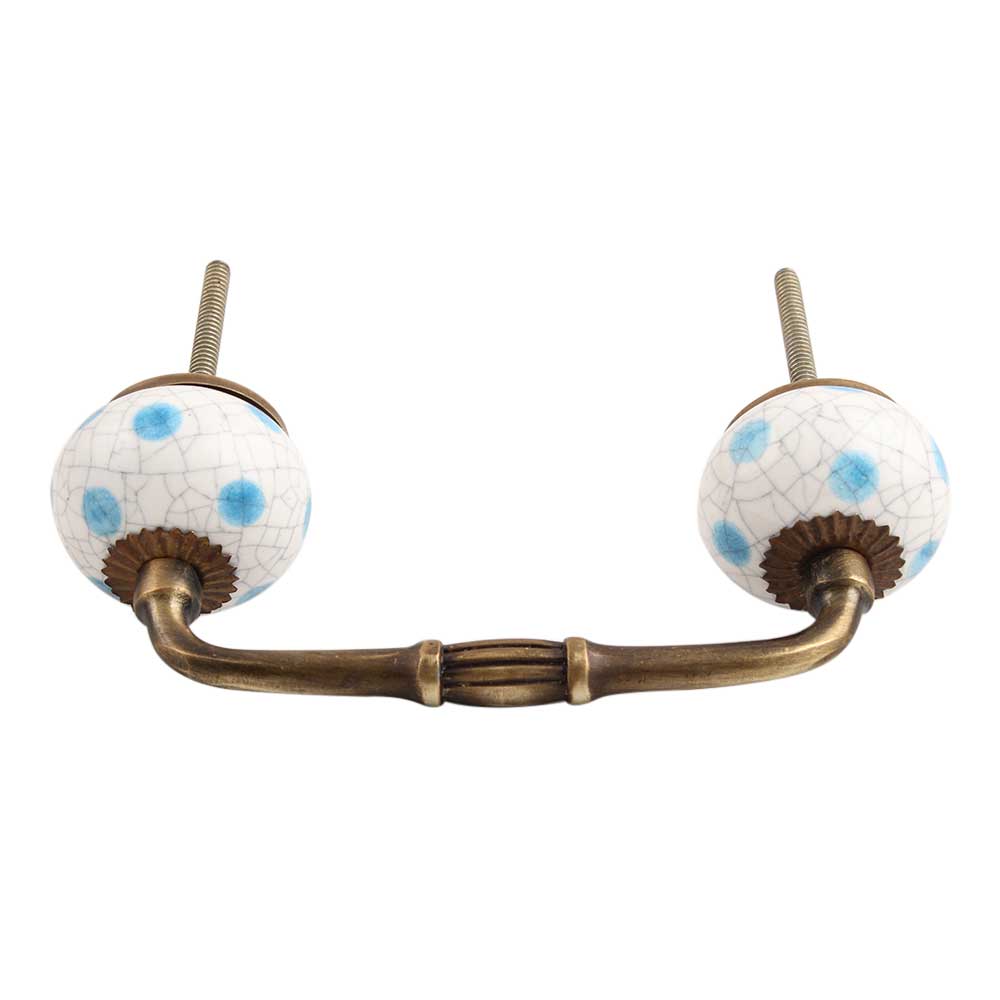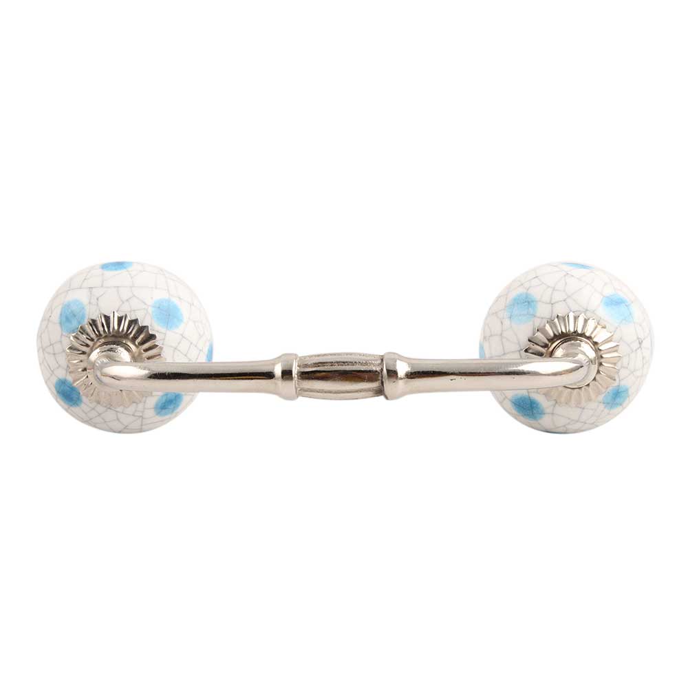 Blue Dotted Cackle Ceramic Bridge Handle. Ideal for Drawer, Dresser, Cabinet, Wardrobe, Cupboard and Almirah.