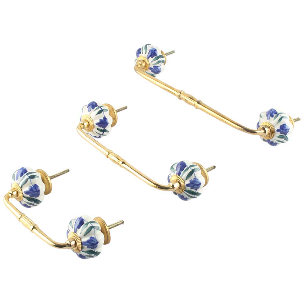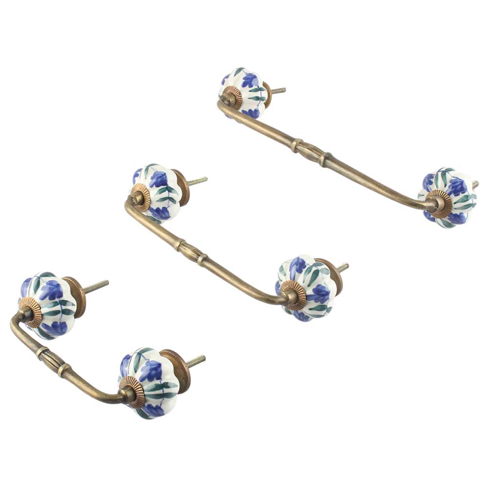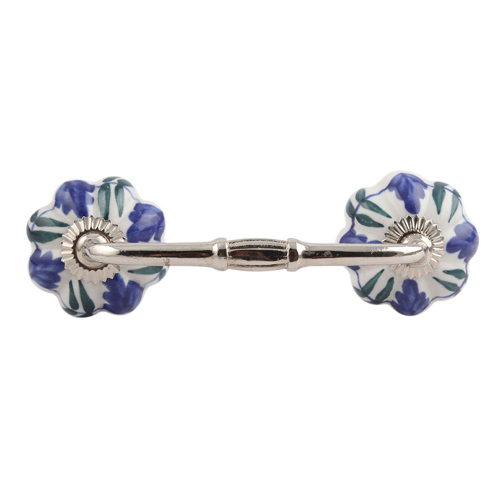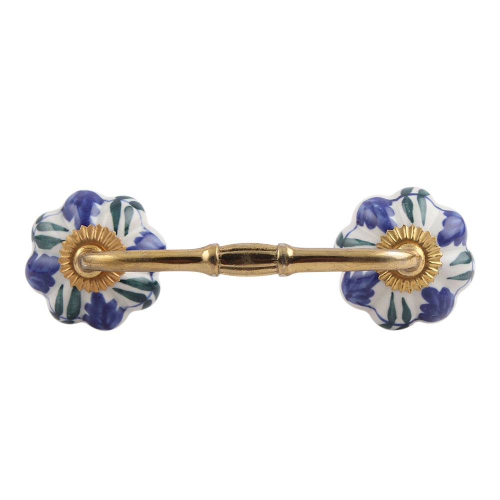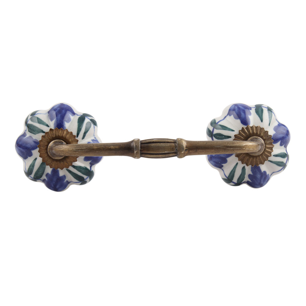 Blue Floral Ceramic Bridge Handle. Ideal for Drawer, Dresser, Cabinet, Wardrobe, Cupboard and Almirah.