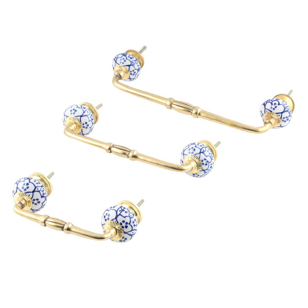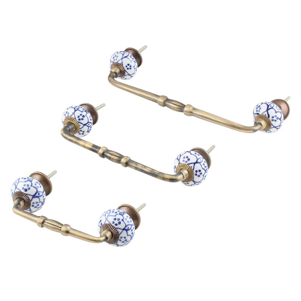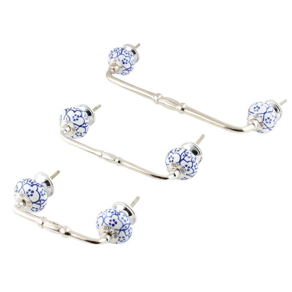 Blue Floral Ceramic Bridge Handles. Ideal for Drawer, Dresser, Cabinet, Wardrobe, Cupboard and Almirah.