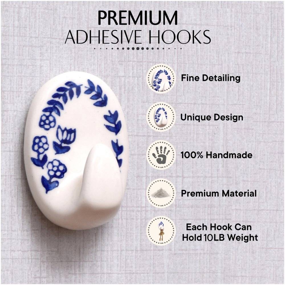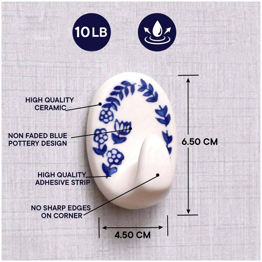 The hook's blue floral design adds a vibrant and stylish touch to your living space. Its delicate pattern brings a sense of calm and tranquility, making it perfect for bathrooms, bedrooms, or even kitchens. The ceramic material gives it a sophisticated, high-quality finish that stands out without overwhelming the room.
