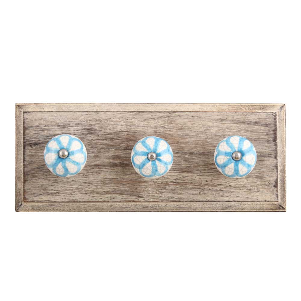 Blue Floral Crackle Ceramic Wooden Hook. A Perfect Complement to the Soft Tone of the Wood are these White Traditional Hat & Coat Hook Made of Genuine Porcelain and Brass. It can be use to Hang Jewellery, Leashes, Towels, Scarves, Light Weight Sweaters, Caps Etc.