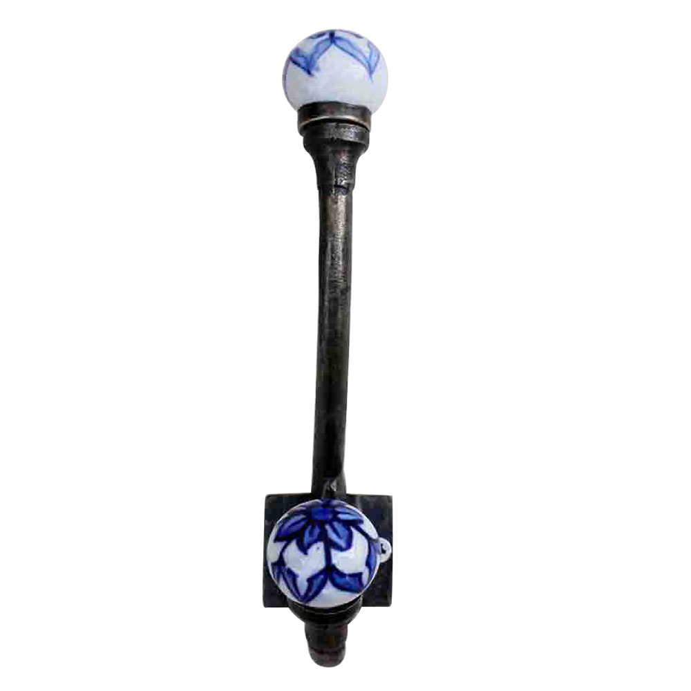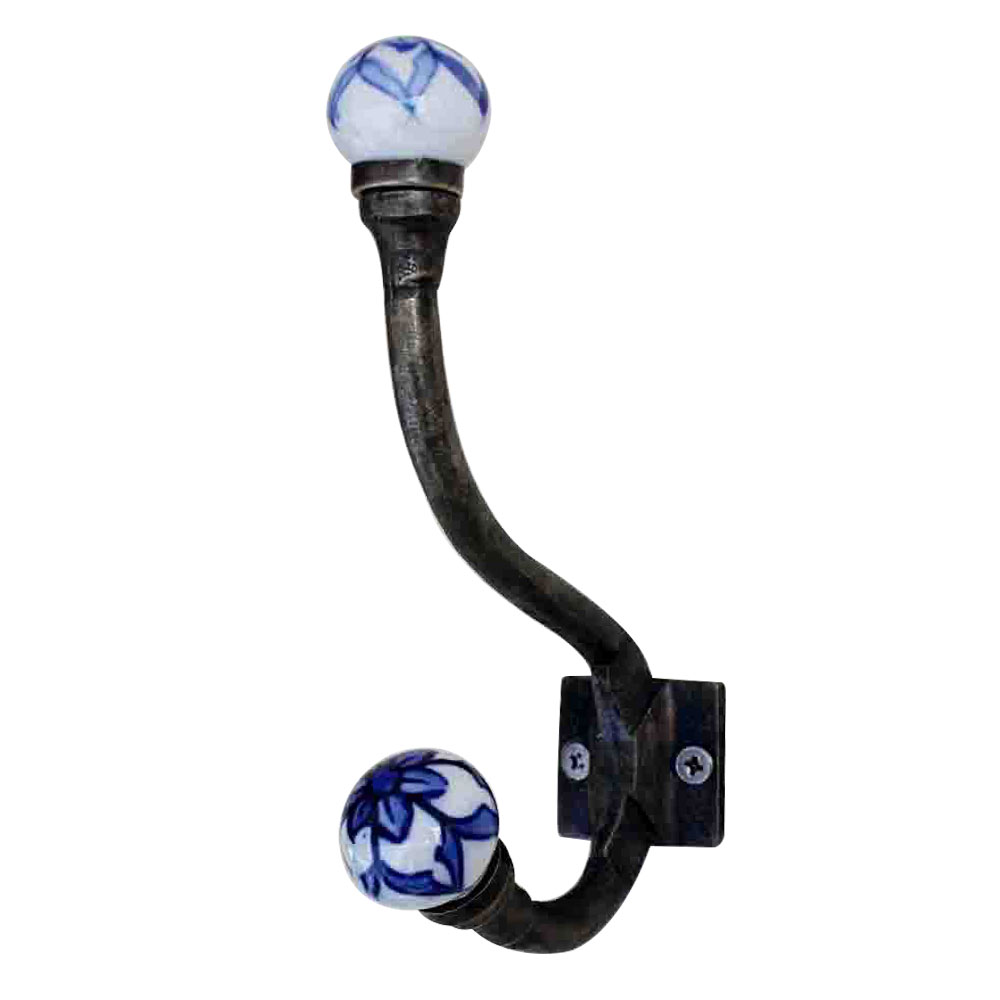Blue Floral Iron Hook-EHG-40.when put on wall or cabinet it gives a sturdy look. This hook is strong enough to hold your cloths, keys, tea cups, coffee mugs, hand towels etc.
