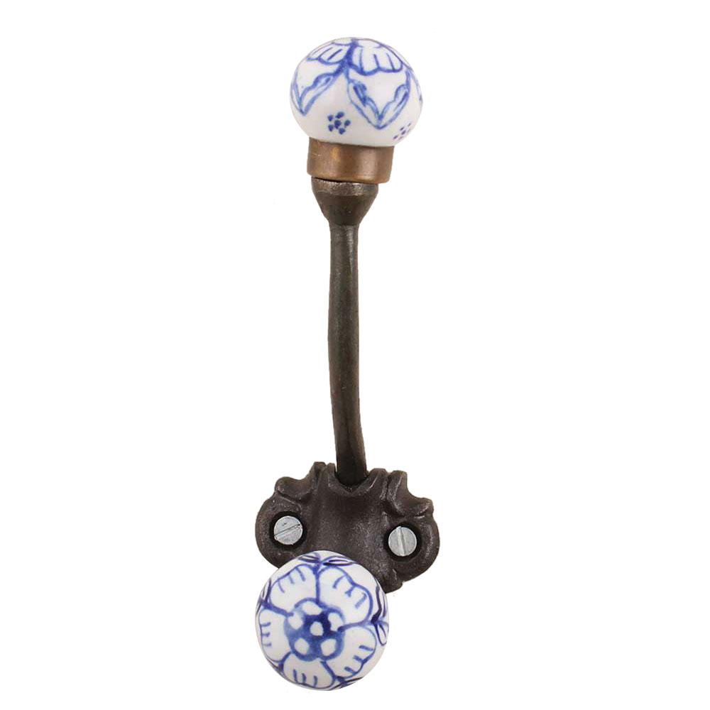 Blue Floral Iron Hook-Ehg-54. When Put on Wall or Cabinet It Gives A Sturdy Look. This Hook is Strong Enough to Hold Your Cloths, Keys, Tea Cups, Coffee Mugs, Hand Towels Etc.