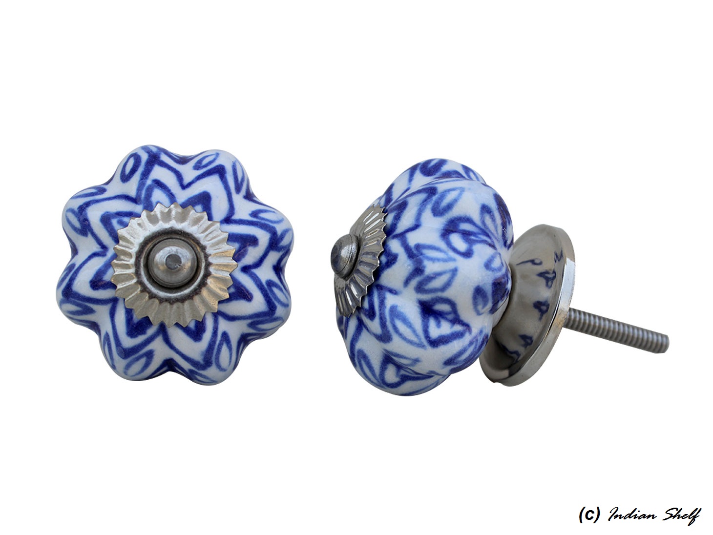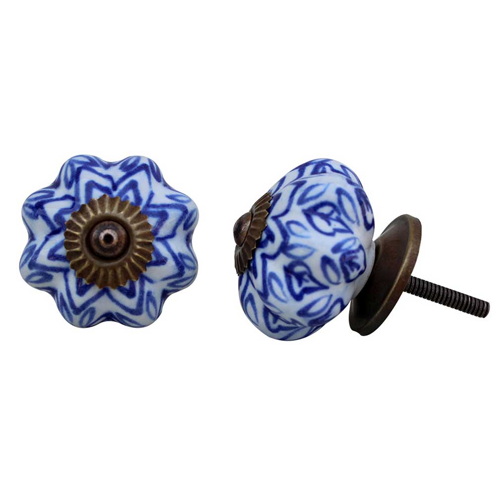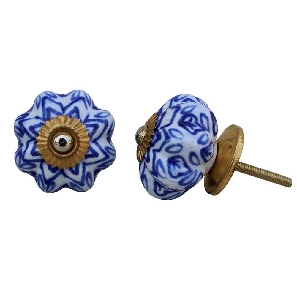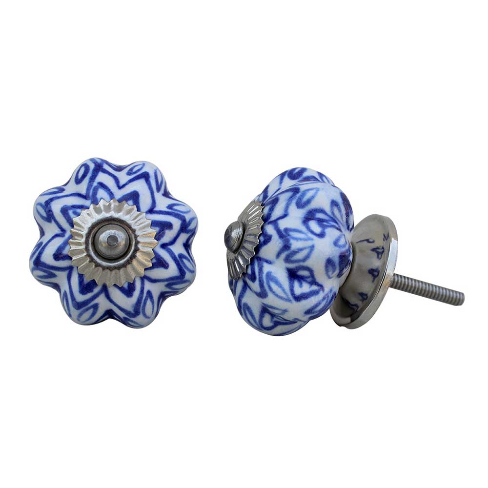 Elevate your furniture with the Blue Floral Melon Ceramic Knob. This charming knob showcases a stunning blue floral design on a melon-shaped ceramic body, bringing both style and practicality to your cabinets, drawers, or dressers. It's an excellent choice for enhancing your home décor, merging classic design with exceptional craftsmanship.