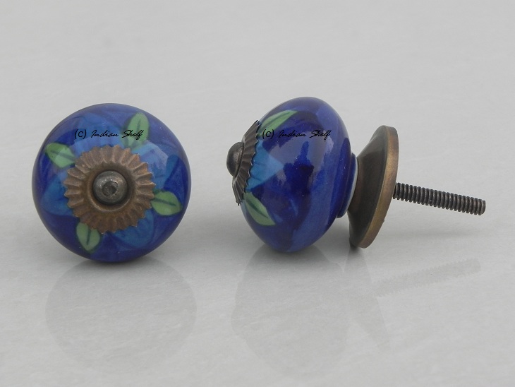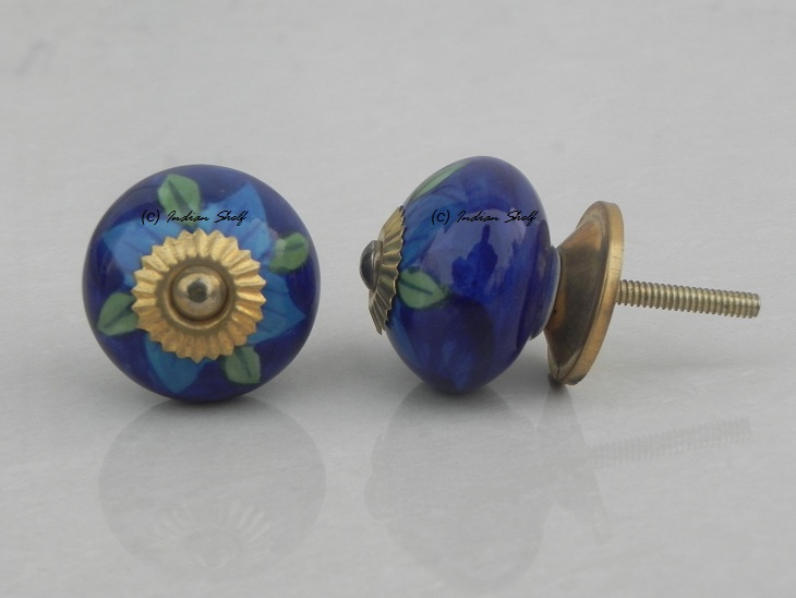 Blue Flower ceramic knob. Ideal for kitchen cabinets, kitchen drawers, dining room, bed room, chest drawers, dressing tables, almirah