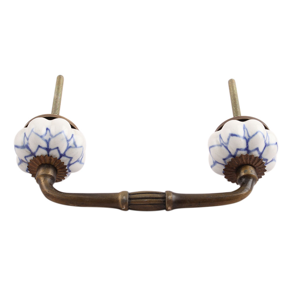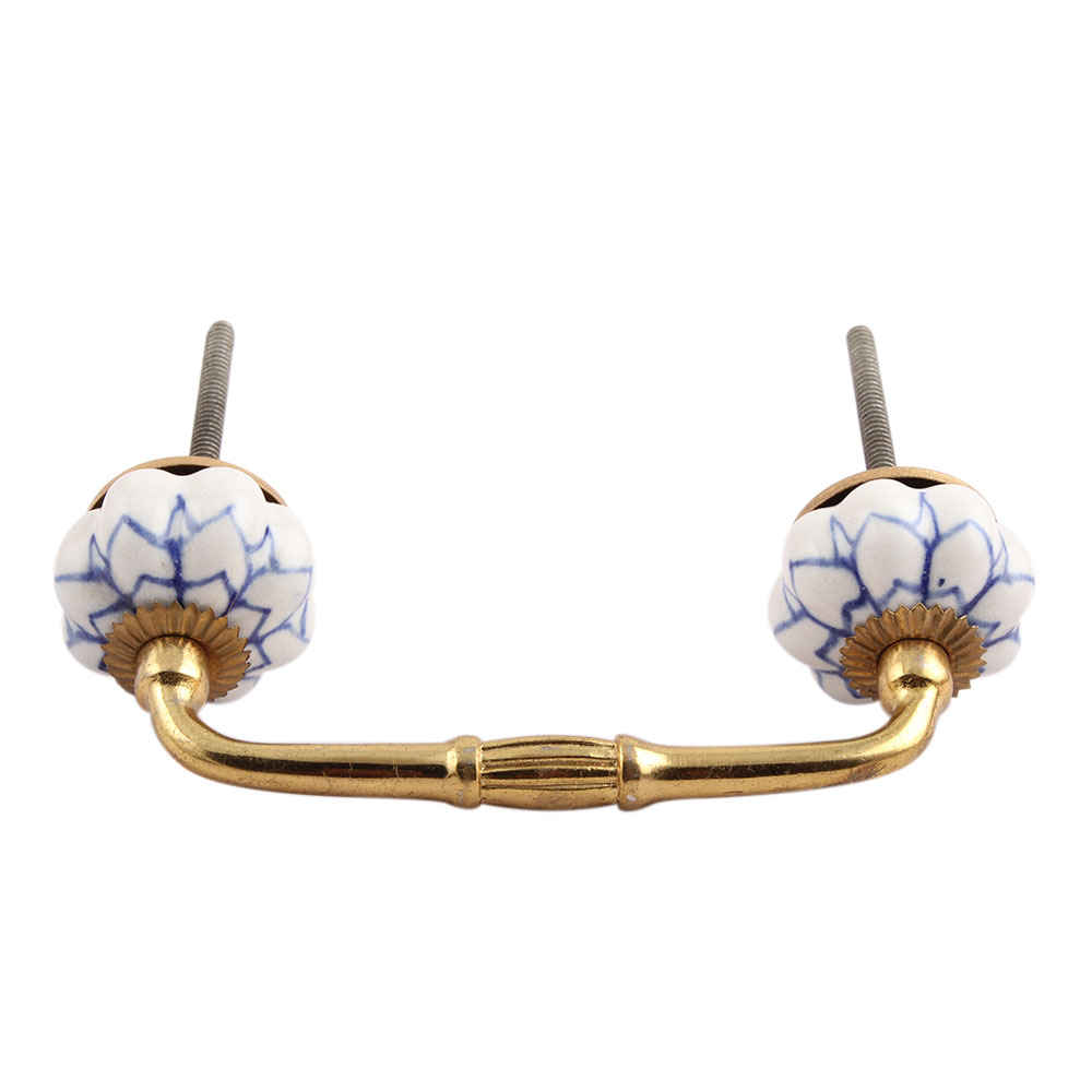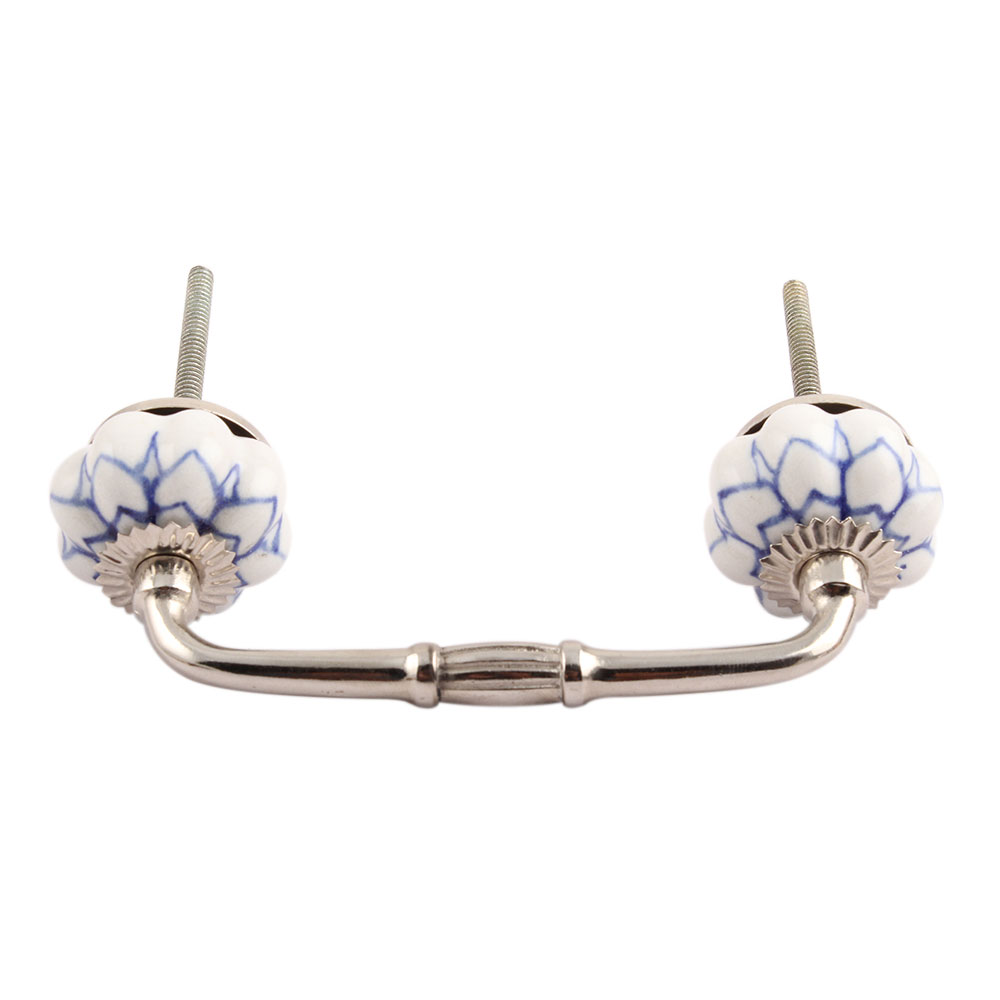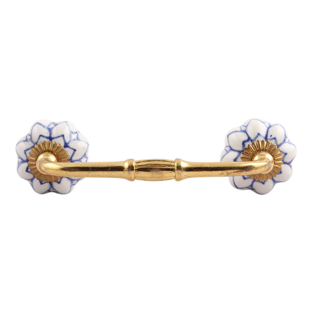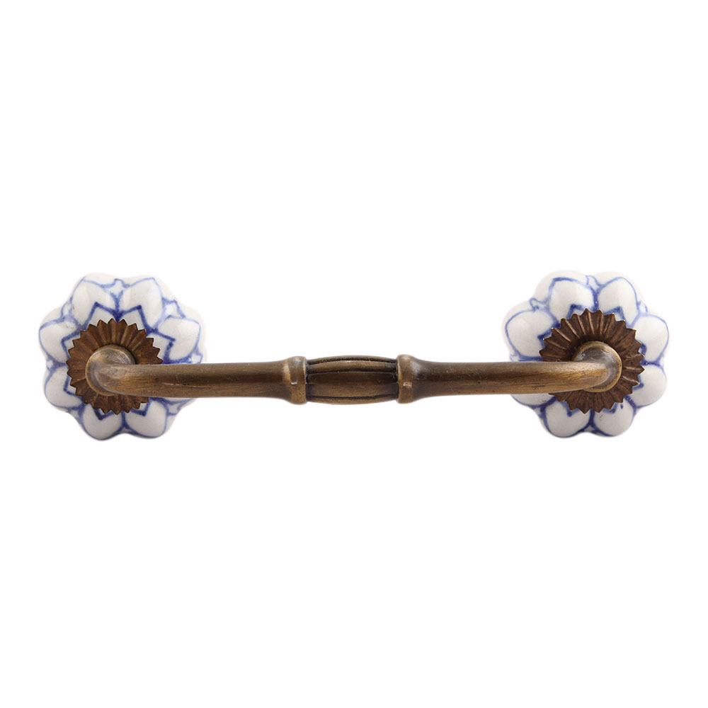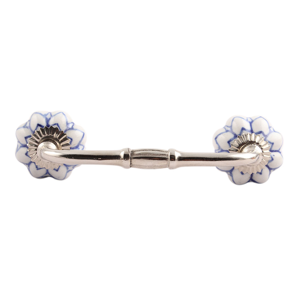 Blue Flower Medium Ceramic Bridge Handle. Ideal for Drawer, Dresser, Cabinet, Wardrobe, Cupboard and Almirah.