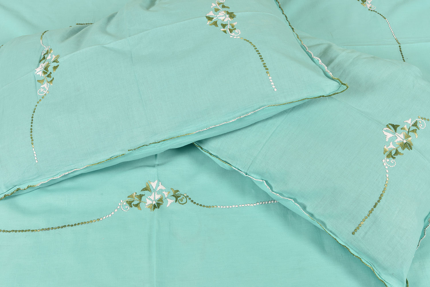 Blue Bed Linen with Floral Design . Hand crafted supporting eye capturing designs and colours.